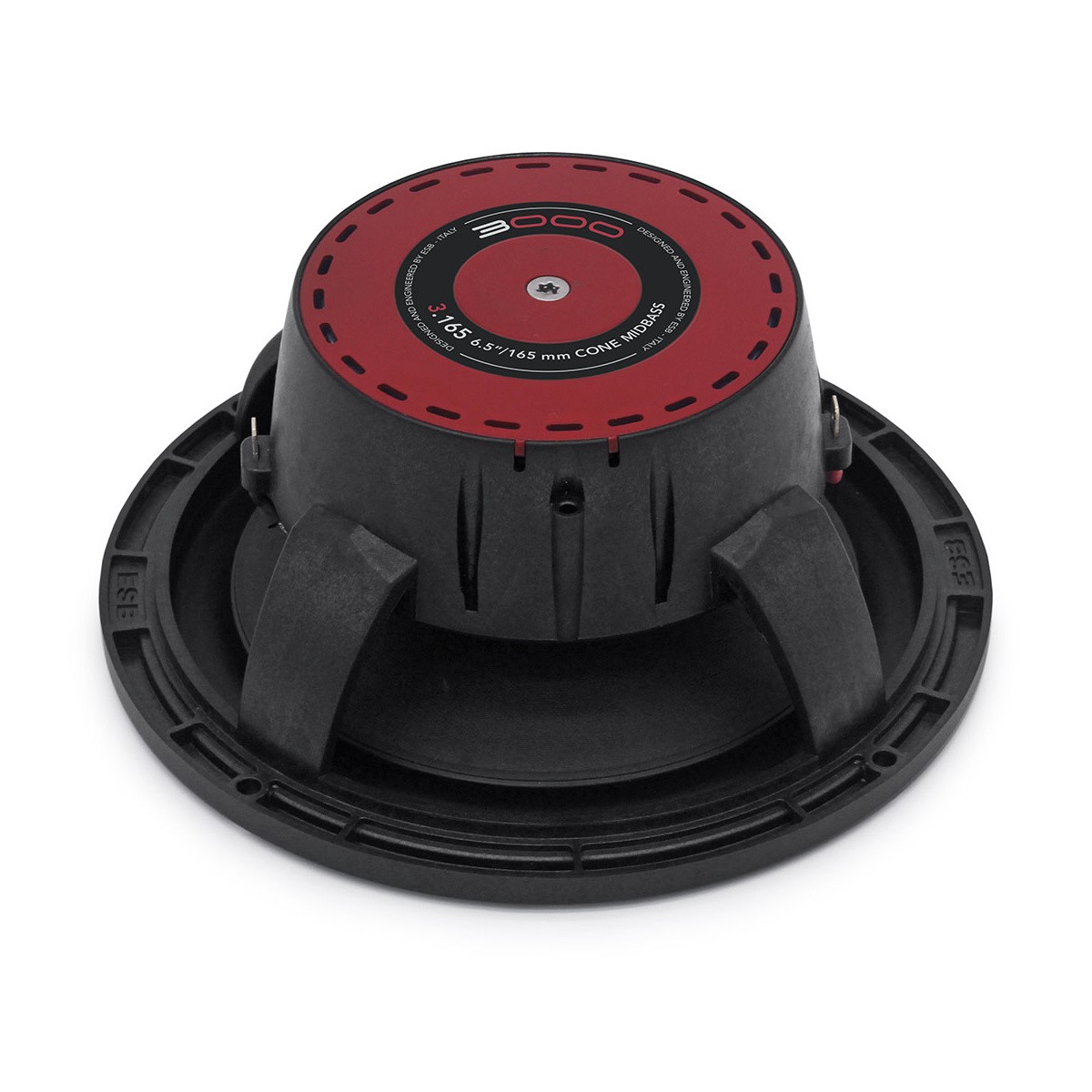 | Диаметър на среднебасовия говорителДиаметърът на говорителя се посочва като диаметър на целия говорител, без да се включват монтажните закрепвания, при които при по-малките говорители (87, 100, 130 mm) закрепванията може да стърчат допълнително. Някои говорители са овални и там размерът се дава в инчове, винаги от най-късата към най-дългата страна. Един инч е приблизително 2,5 cm. | 165 mm |