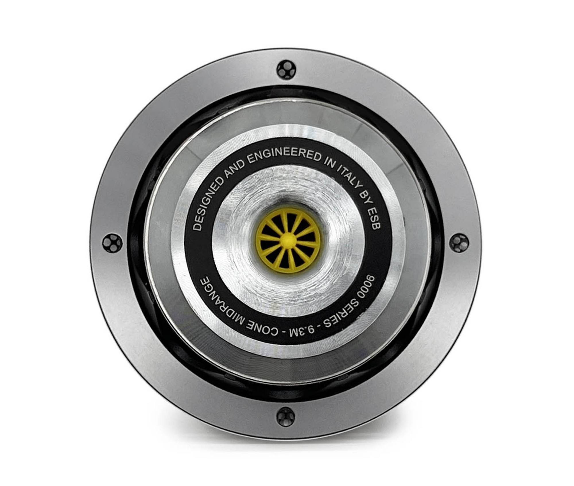 ESB Audio 9.3M представляват една от двете варианти средночестотни говорители от серия 9000. Моделите се различават по диаметъра на мембраната и по някои други параметри и технологии, но от друга страна споделят много технологични и дизайнерски решения. На първи поглед ще ви впечатли дизайнът на средночестотния говорител, воден от карбоновата мембрана, красивия кош с цветен дизайн и опционална решетка от алуминий, обработен CNC. Мембраната е изработена от вакуумно и автоклавно пресован високоякостен карбон. Едва ли има по-идеална комбинация от лекота и твърдост за балансиране на отклоненията на мембраната при ниски и много високи честоти. Тази технология се използва рядко в говорители поради цената си, но предлага огромни предимства по отношение на естественото възпроизвеждане и високата динамика при преходни процеси. Мембраната е направена от един елемент без праховиден купол, което носи невероятни предимства за разсейване и равномерност на честотната реакция в горния среден диапазон. Окачването от NBL гума е формирано така, че да осигурява много плавно движение с ниско отклонение, което при приближаване до лимита става все по-контролирано. Това прави този говорител изключително динамичен и способен да поема големи мощности. Перфектната свързаност елиминира нежеланите резонанси и деформации на мембраната. Дори звуковите вълни вътре в мембраната се разпръскват много по-добре в сравнение с традиционното окачване. Дебелината на окачването е диференцирана, за да улесни малките движения и да подобри общия звук на говорителя. Струва си да се отбележи и прахово боядисаният кош от алуминиев отливък, който предлага много малко съпротивление при преминаване на въздуха и формата му намалява вибрациите и резонансите. Големият неодимов магнит е устойчив на високи температури и е един от най-мощните магнити за средночестотен говорител от този размер. Магнитът осигурява огромна магнитна сила дори след часове на възпроизвеждане и генерира невероятна задвижваща сила за перфектно управление на бобината, висока скорост на преходната реакция и позволява значително намаляване на размерите и обема на магнитния мотор. Сред ексклузивните технологии на серия 9000 е TCA системата. Тя управлява въздушния поток, движен от мембраната, и създава аperiodично демпфиращо съпротивление. Това означава, че освобождаването на енергията, натрупана при движението на мембраната, протича контролирано и бързо, без да се образуват постоянни осцилации. Това допринася за по-прецизна и вярна реакция към звуковия източник и за точността и общото качество на възприемането.