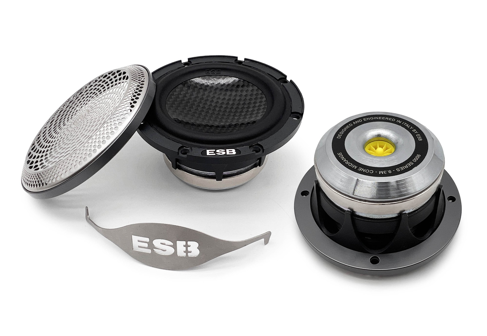 Говорителите ESB от серия 9000 (Novemila) смело принадлежат към high-end сегмента и са сред технологично най-напредналите автомобилни говорители, които някога са били произведени. И също така сред най-елегантните! Технологията и дизайнът се съчетават в нова и нетипична естетика благодарение на изключителната цветна форма около мембраната на високочестотния говорител и в кошовете на басовия и средночестотния говорител. Този луксозен дизайн не е създаден само от естетически причини. Той изразява иновация, която прави акустичната промяна на ръба на високочестотните говорители по-малко изразена и се адаптира към дизайна на говорителите. Аналогия можете да намерите в новите двигатели Rolls-Royce за най-съвременните самолети, които разполагат със същата форма на задния ръб. Точно там, където излиза въздухът и се формират основните турбуленции. С новата конструкция тези двигатели постигнаха големи предимства като намаляване на шума в кабината с 10 dB и едновременно с това намаляване на разхода на гориво с 10 %. Това обаче не е случайно сходство. Конструкцията на high-end говорителите ESB и на двигателите Rolls-Royce се базира на един и същи принцип — да се намалят нежеланите свойства на звука по ръба на говорителите или двигателите и ефективно да се насочи въздушният поток навън. Това е само една от многото ексклузивни технологии в моделната серия 9000. Тя включва общо шест първокласни отделни компонента, две 2-полосни компонентни системи и три 3-полосни системи, които впечатляват не само със звука си, но и с нетрадиционен луксозен дизайн и изключителни материали.