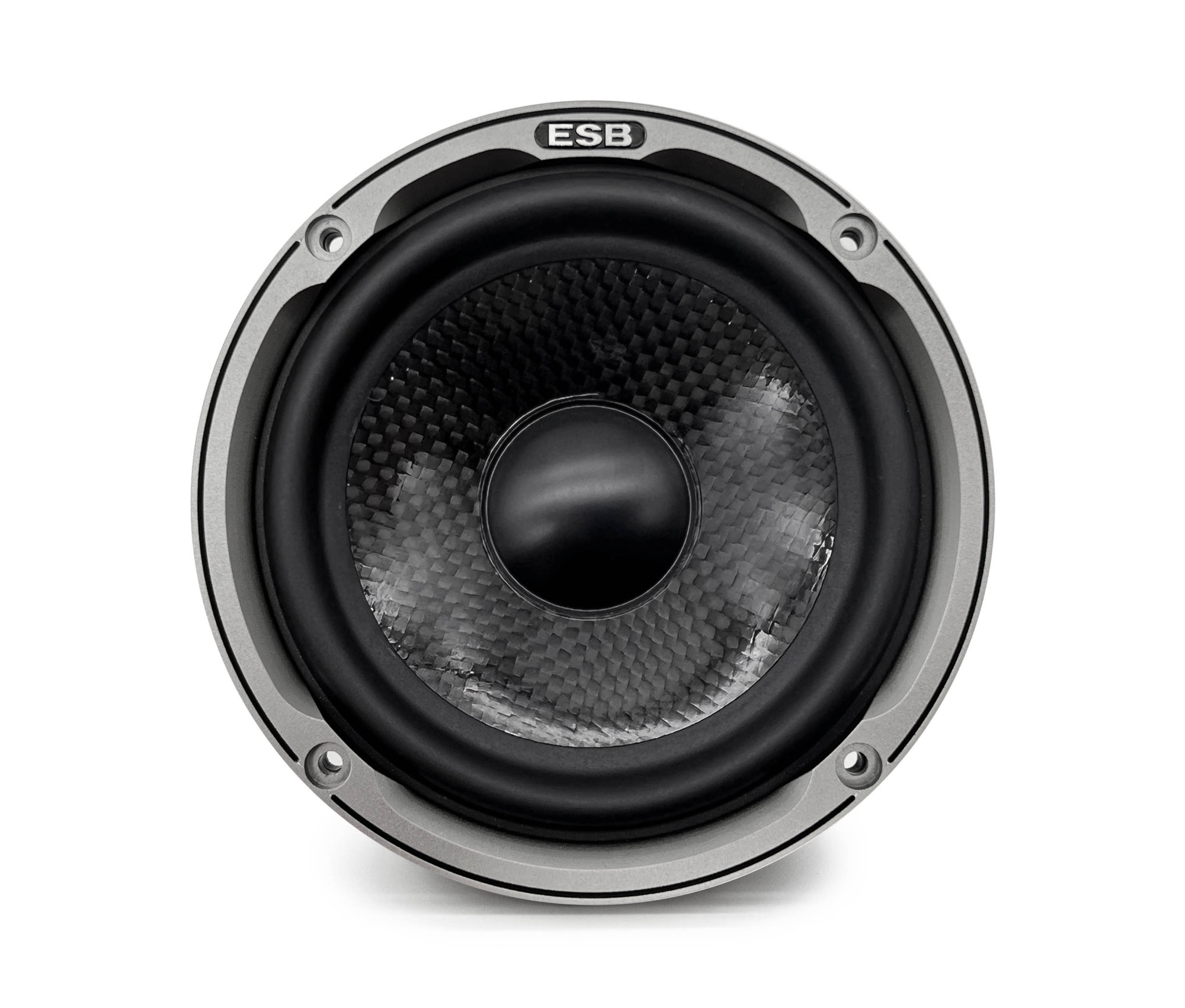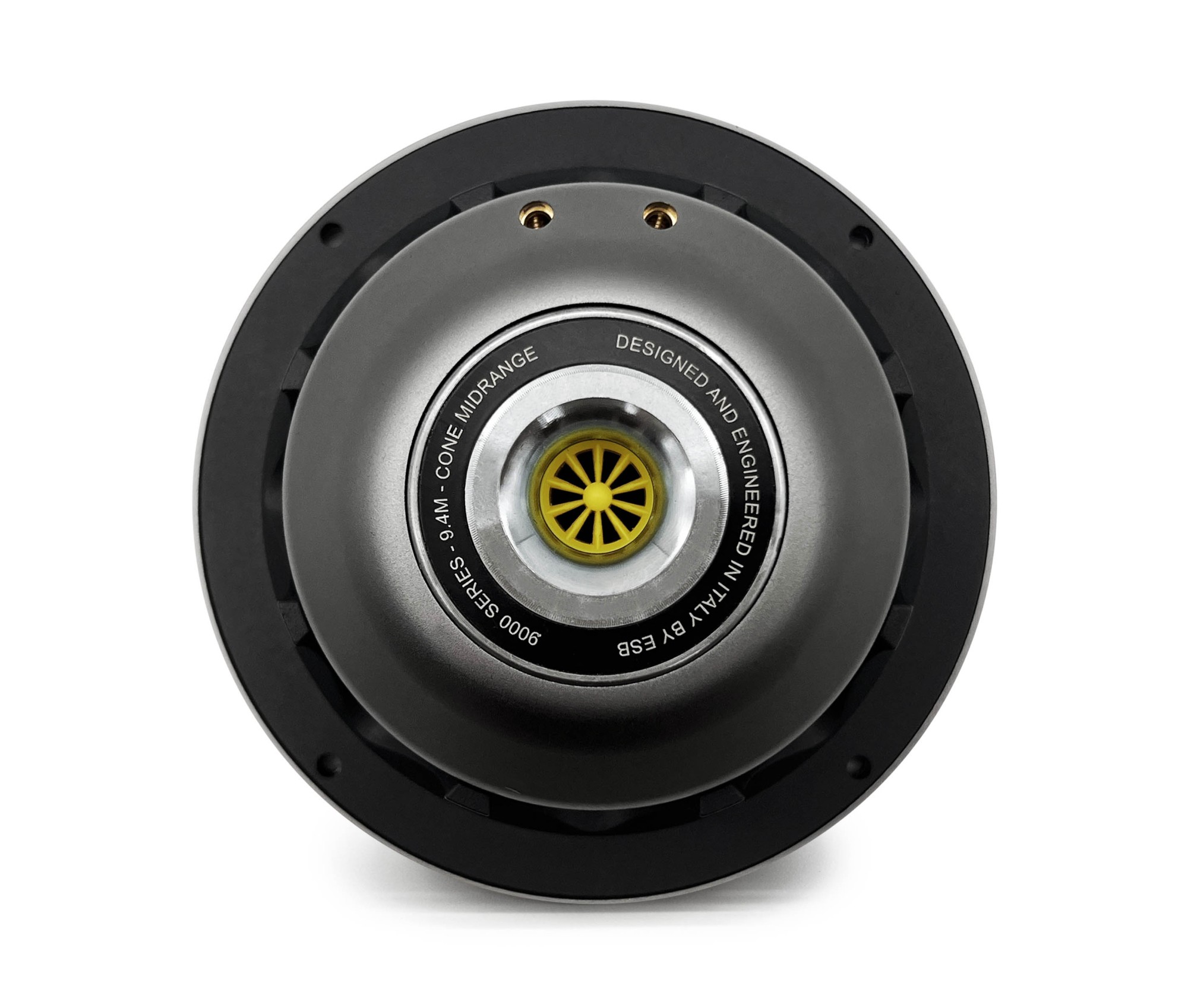 ESB Audio 9.4M представляват по-напредналата от двете варианти средночестотни говорители от серия 9000. Моделите се различават по диаметъра на мембраната и по някои други параметри и технологии, но от друга страна споделят много технологични и дизайнерски решения. На първи поглед ще ви впечатли дизайнът на средночестотния говорител, воден от карбоновата мембрана, красивия кош с цветен дизайн и опционална решетка от алуминий, обработен CNC. Мембраната е изработена от вакуумно и автоклавно пресован високоякостен карбон. Едва ли има по-идеална комбинация от лекота и твърдост за балансиране на отклоненията на мембраната при ниски и много високи честоти. Тази технология се използва рядко в говорители поради цената си, но предлага огромни предимства по отношение на естественото възпроизвеждане и високата динамика при преходни процеси. Част от мембраната е ламинирана алуминиева праховидна капачка, която помага да се разшири честотната реакция на този средночестотен говорител нагоре, а формата и размерът ѝ помагат за изравняване и линеаризиране на честотната реакция. Окачването от NBL гума е формирано така, че да осигурява много плавно движение с ниско отклонение, което при приближаване до лимита става все по-контролирано. Това прави този говорител изключително динамичен и способен да поема големи мощности. Струва си да се отбележи и прахово боядисаният кош от алуминиев отливък, който предлага много малко съпротивление при преминаване на въздуха и формата му намалява вибрациите и резонансите. Двойката големи неодимови магнити е устойчива на високи температури и представлява една от най-мощните магнитни системи за средночестотен говорител от този размер. Магнитите осигуряват огромна магнитна сила дори след часове възпроизвеждане и генерират невероятна задвижваща сила за перфектно управление на бобината, висока скорост на преходната реакция и позволяват значително намаляване на размерите и обема на магнитния мотор. Сред ексклузивните технологии на серия 9000 е TCA системата. Тя управлява въздушния поток, движен от мембраната, и създава аperiodично демпфиращо съпротивление. Това означава, че освобождаването на енергията, натрупана при движението на мембраната, протича контролирано и бързо, без да се образуват постоянни осцилации. Това допринася за по-прецизна и вярна реакция към звуковия източник и за точността и общото качество на възприемането. Медното пръстенче, поставено в въздушната междина, помага за намаляване на индуктивността на подвижната бобина, така че при високи честоти да предлага минимално съпротивление. Това означава по-добра високо-честотна реакция, която позволява на говорителя по-точно да възпроизвежда високи честоти. Намаляването на индуктивността допринася за по-добро справяне с бързите преходи на звуковите сигнали, което може да подобри способността на говорителя да възпроизвежда преходни звукови импулси с по-голяма точност.