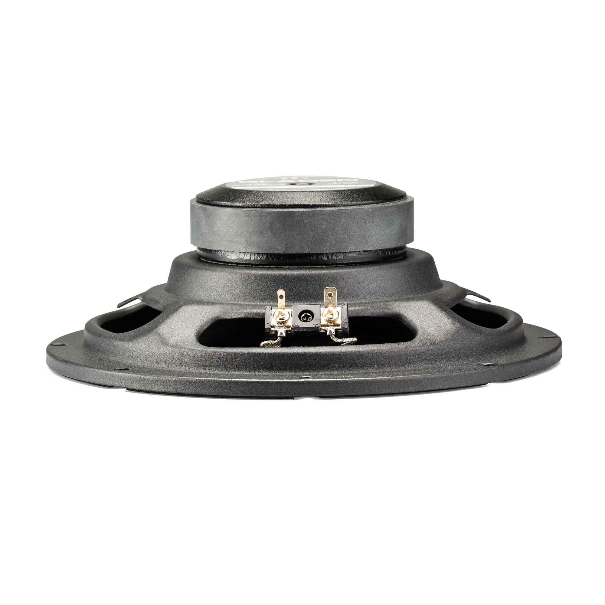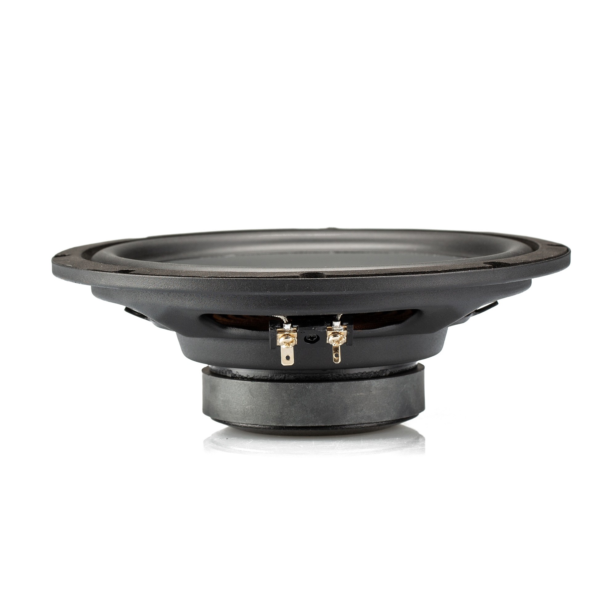 | Тип на високоговорителитеКоаксиални високоговорители: Коаксиалните високоговорители се характеризират с конструкция, наречена всичко в едно. Високочестотният и среднобасовият говорител са в един и същ кош. Предимството е по-лесен монтаж, но поради свързването или близостта на честотните диапазони в един говорител обикновено се понижава качеството на звука. Обикновено в центъра на среднобасовия говорител се намира високочестотният говорител, чиито звукова бобина работи във втората въздушна междина на общия магнитен кръг. Коаксиален говорител с три честотни диапазона се състои от среднобасов говорител, отпред на специален носач е поставен средночестотният говорител и отделен високочестотен. Компонентни високоговорители: Компонентните високоговорители се отличават с разделянето на отделни честотни диапазони: високочестотен + среднобасов + евентуално басов диапазон. Отделните говорители могат да бъдат разположени напълно отделно, което води до по-добро звуково и акустично представяне. В огромното мнозинство от случаите при компонентните високоговорители се доставя и външна кросоувърна мрежа, която разделя високите, средните/среднобасовите и при системи с три честотни диапазона и басовите честоти, както и позволява настройване на нивото в децибели на високочестотния говорител (напр. +2 dB, 0 dB, -2 dB), стръмността (напр. 6 dB/октава, 12 dB/октава) или активно/bi-amp свързване. | Среднобасови |