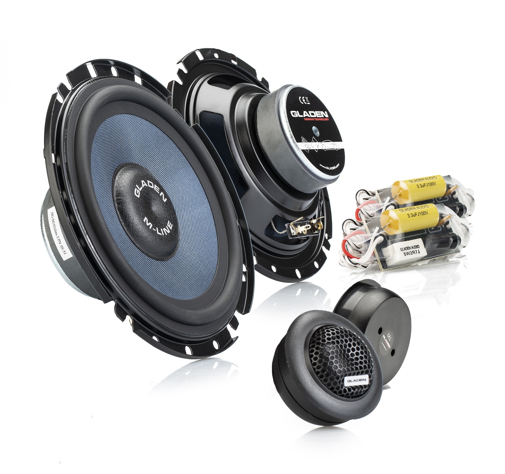 Моделната линия M-Line се възползва от напредналите технологии на по-високите серии говорители Gladen и от обширния опит в конструирането на говорители, което позволява отлична възпроизвеждане на звука на достъпна цена. Втората генерация на тази серия следва успеха на бестселъра на немския производител и предлага няколко подобрения. Сред тях са по-здрав и по-стабилен стоманен кош с подобрено водоустойчиво покритие, иновативна мембрана от стъклени влакна и усукани медни проводници към високочестотните говорители. Всички говорители от серията M-Line имат висока ефективност, постигната чрез ефективно съчетание на окачване и ниско тегло на мембраната. Надстандартната чувствителност заедно с понижения импеданс до 3 ома позволява лесно свързване към фабрични или следмонтажни (aftermarket) автомобилни радиа без необходимост от външен усилвател. Успехът на тези популярни говорители се дължи не само на отличния звук в съответната ценова категория, но и на лесния монтаж благодарение на компактните честотни кросоувъри и стопроцентната надеждност. За по-приветлив монтаж допринася и намалената монтажна дълбочина при версията slim.