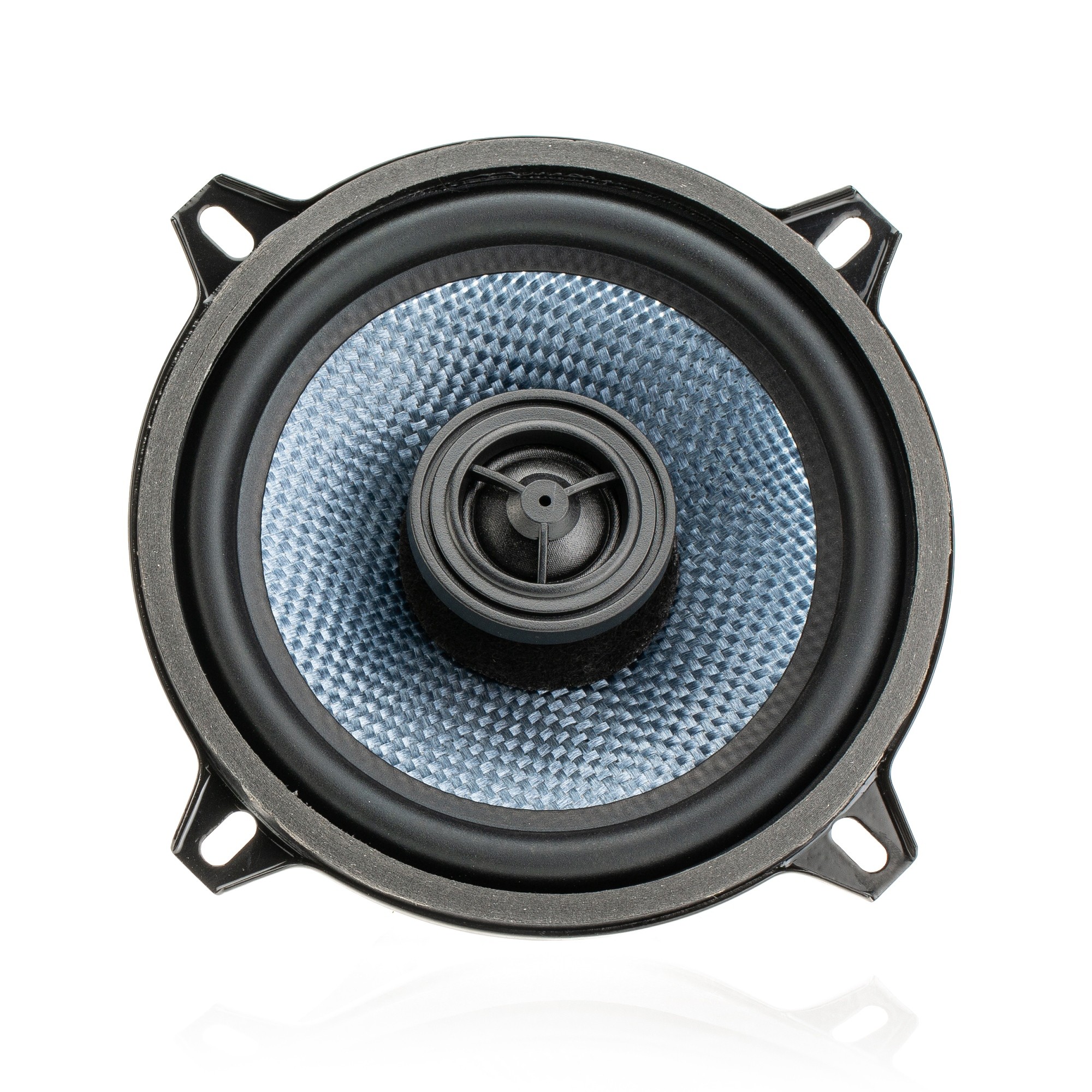 | Тип на високоговорителитеКоаксиални високоговорители: Коаксиалните високоговорители се характеризират с конструкция, наречена всичко в едно. Високочестотният и среднобасовият говорител са в един и същ кош. Предимството е по-лесен монтаж, но поради свързването или близостта на честотните диапазони в един говорител обикновено се понижава качеството на звука. Обикновено в центъра на среднобасовия говорител се намира високочестотният говорител, чиито звукова бобина работи във втората въздушна междина на общия магнитен кръг. Коаксиален говорител с три честотни диапазона се състои от среднобасов говорител, отпред на специален носач е поставен средночестотният говорител и отделен високочестотен. Компонентни високоговорители: Компонентните високоговорители се отличават с разделянето на отделни честотни диапазони: високочестотен + среднобасов + евентуално басов диапазон. Отделните говорители могат да бъдат разположени напълно отделно, което води до по-добро звуково и акустично представяне. В огромното мнозинство от случаите при компонентните високоговорители се доставя и външна кросоувърна мрежа, която разделя високите, средните/среднобасовите и при системи с три честотни диапазона и басовите честоти, както и позволява настройване на нивото в децибели на високочестотния говорител (напр. +2 dB, 0 dB, -2 dB), стръмността (напр. 6 dB/октава, 12 dB/октава) или активно/bi-amp свързване. | Коаксиални 2-посочни |