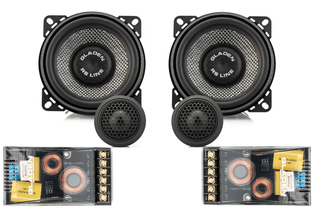 Моделната серия RS от Gladen въплъщава усъвършенстван звук с акцент върху детайлите и висока мощност, перфектна изработка и не на последно място най-широкото портфолио говорители във всички серии на Gladen. RS включва компонентни и коаксиални говорители от висок клас, включително трипътови и активни системи за разнообразни възможности за инсталация. Мембраната от стъклени влакна се отличава с лекотата си и много ниските изкривявания. Стабилната стоманена кошница, здрава магнитна система, копринени високочестотни говорители или кросоувър с 9 възможности за настройка при компонентните системи (не важи за версиите Active и Speed) допринасят за извънредно звуково представяне. Високата чувствителност и намаленият импеданс до 3 ома позволяват създаване на озвучаване на автомобила без големи изисквания към мощността на външните усилватели. Ако търсите говорители, насочени към по-високо качество на звука и извънредна мощност, разгледайте серията RS от Gladen!