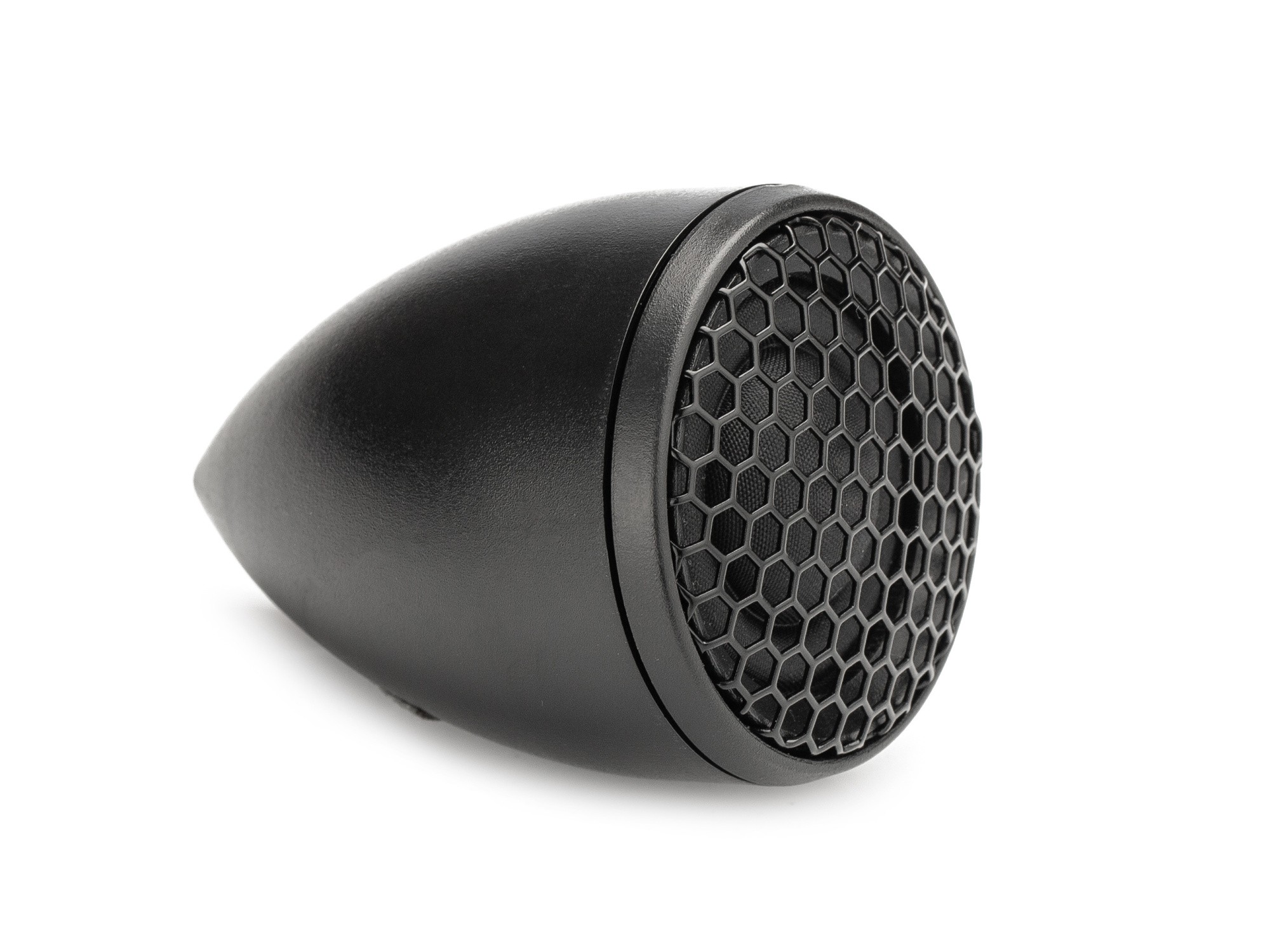 | Тип на високоговорителитеКоаксиални високоговорители: Коаксиалните високоговорители се характеризират с конструкция, наречена всичко в едно. Високочестотният и среднобасовият говорител са в един и същ кош. Предимството е по-лесен монтаж, но поради свързването или близостта на честотните диапазони в един говорител обикновено се понижава качеството на звука. Обикновено в центъра на среднобасовия говорител се намира високочестотният говорител, чиито звукова бобина работи във втората въздушна междина на общия магнитен кръг. Коаксиален говорител с три честотни диапазона се състои от среднобасов говорител, отпред на специален носач е поставен средночестотният говорител и отделен високочестотен. Компонентни високоговорители: Компонентните високоговорители се отличават с разделянето на отделни честотни диапазони: високочестотен + среднобасов + евентуално басов диапазон. Отделните говорители могат да бъдат разположени напълно отделно, което води до по-добро звуково и акустично представяне. В огромното мнозинство от случаите при компонентните високоговорители се доставя и външна кросоувърна мрежа, която разделя високите, средните/среднобасовите и при системи с три честотни диапазона и басовите честоти, както и позволява настройване на нивото в децибели на високочестотния говорител (напр. +2 dB, 0 dB, -2 dB), стръмността (напр. 6 dB/октава, 12 dB/октава) или активно/bi-amp свързване. | Високочестотни |