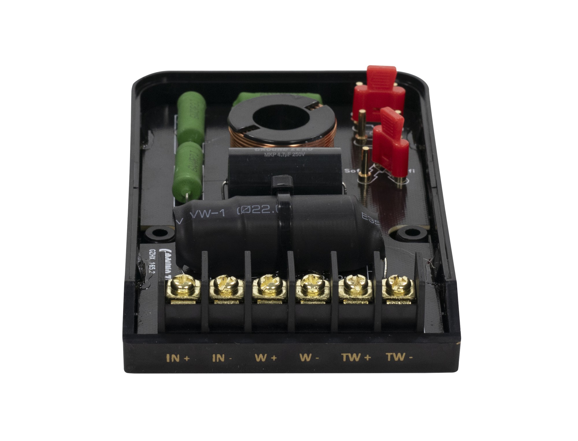 | Честотна кросоувър мрежа в комплектаЧестотен кросоувър е важна част от практически всички високоговорители. Кросоувърът обикновено съдържа резистори с различни стойности, бобини с различни размери и видове кондензатори, които съществено променят звука. За какво служат кросоувърите описваме по-долу. Компонентни високоговорители: Част от всяка качествена компонентна звукова система е кросоувърът. Неговата задача е да осигури разделяне на честотите, които усилвателят произвежда в целия акустичен спектър, така че всеки от говорителите да получи само онзи участък от диапазона, който може да възпроизведе оптимално по отношение на ефективност и минимално изкривяване. Коаксиални високоговорители: При коаксиалните говорители в повечето случаи има прост кросоувър (6 dB/окт.), съставен от кондензатор за високочестотния говорител. | Да |