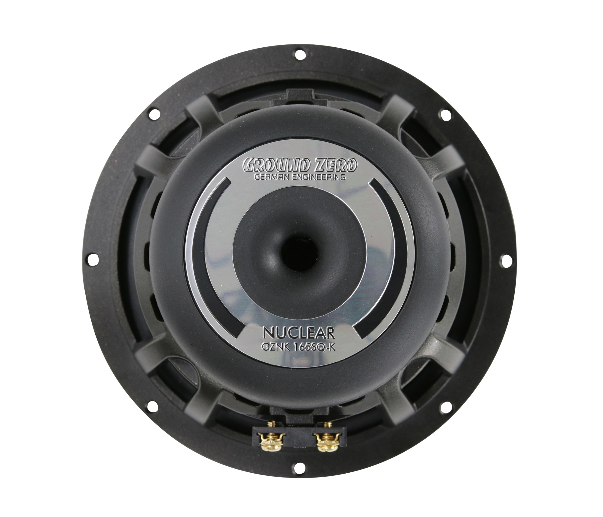 Ground Zero GZNK 165SQ-K е премиален компонентен комплект говорители от серията Uranium, проектиран за взискателни слушатели с високи изисквания към качеството на звука. Средно-нискочестотният говорител е оборудван с high-tech мембрана от Kevlar®, която се отличава с висока якост, ниско тегло и устойчивост на деформации, което гарантира прецизно, бързо и безизкривително възпроизвеждане дори при високи нива на звука. Благодарение на 38mm говорителна бобина, специално вентилирана алуминиева кошница и висока мощност, този средно-нискочестотен говорител предлага изключително динамично и чисто представяне в честотния диапазон 40 Hz – 5 kHz. В комплекта е включен и 28mm високоговорител с купол от коприна, анодизирано алуминиево тяло и неодимов магнит за меки и детайлни високи честоти. Благодарение на прецизната настройка по състезателни стандарти Ground Zero, GZNK 165SQ-K предлага над средно слушателско преживяване и изключително съотношение между производителност и цена.Специфики на серията Ground Zero Nuclear