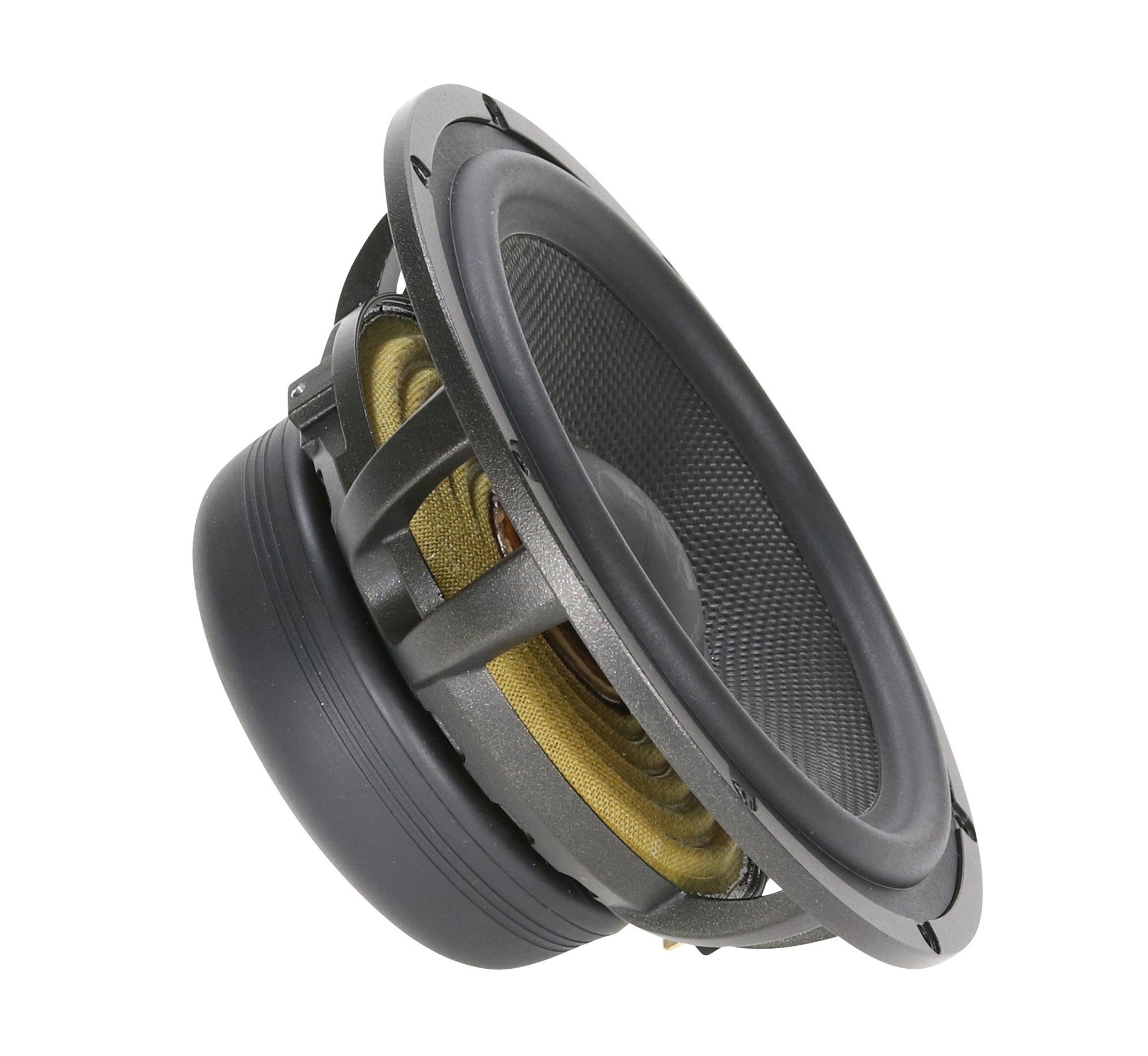 | Диаметър на среднебасовия говорителДиаметърът на говорителя се посочва като диаметър на целия говорител, без да се включват монтажните закрепвания, при които при по-малките говорители (87, 100, 130 mm) закрепванията може да стърчат допълнително. Някои говорители са овални и там размерът се дава в инчове, винаги от най-късата към най-дългата страна. Един инч е приблизително 2,5 cm. | 165 mm |