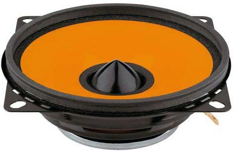 | Тип на високоговорителитеКоаксиални високоговорители: Коаксиалните високоговорители се характеризират с конструкция, наречена всичко в едно. Високочестотният и среднобасовият говорител са в един и същ кош. Предимството е по-лесен монтаж, но поради свързването или близостта на честотните диапазони в един говорител обикновено се понижава качеството на звука. Обикновено в центъра на среднобасовия говорител се намира високочестотният говорител, чиито звукова бобина работи във втората въздушна междина на общия магнитен кръг. Коаксиален говорител с три честотни диапазона се състои от среднобасов говорител, отпред на специален носач е поставен средночестотният говорител и отделен високочестотен. Компонентни високоговорители: Компонентните високоговорители се отличават с разделянето на отделни честотни диапазони: високочестотен + среднобасов + евентуално басов диапазон. Отделните говорители могат да бъдат разположени напълно отделно, което води до по-добро звуково и акустично представяне. В огромното мнозинство от случаите при компонентните високоговорители се доставя и външна кросоувърна мрежа, която разделя високите, средните/среднобасовите и при системи с три честотни диапазона и басовите честоти, както и позволява настройване на нивото в децибели на високочестотния говорител (напр. +2 dB, 0 dB, -2 dB), стръмността (напр. 6 dB/октава, 12 dB/октава) или активно/bi-amp свързване. | средночестотни |