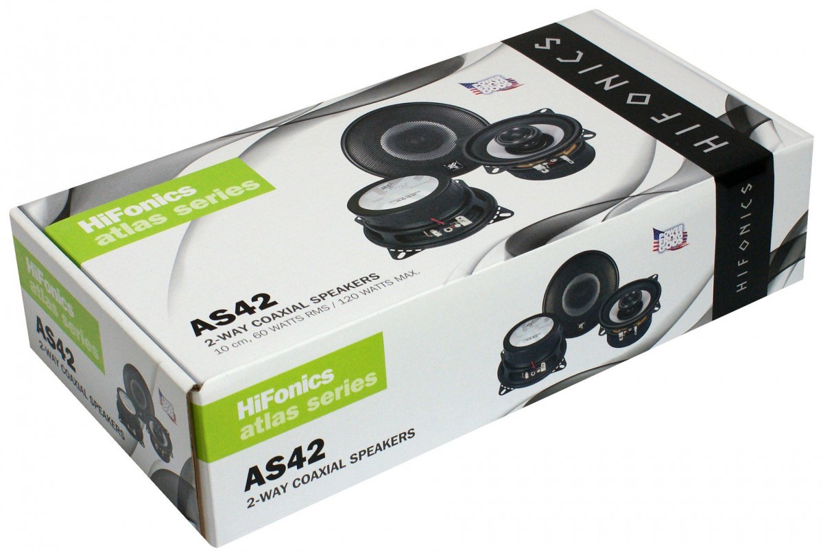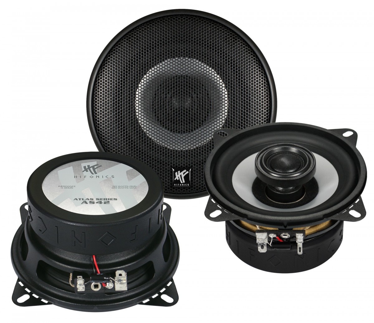 Най-новите говорители от по-висок клас Atlas постигат високо техническо ниво, съпоставимо с усилвателите HiFonics. Новата серия коаксиални говорители AS е по-достъпна, но въпреки това достига най-високи качества. Стоманена кошница, бобини устойчиви на високи температури, полипропиленови мембрани с алуминиев вид и еластични бутилови висящи окачвания гарантират перфектно и силно представяне на средночестотните. Копринените високочестотни говорители пък придават на звука точност и прецизност дори при най-високите честоти. Един от най-добре звучащите коаксиални говорители на съвременния пазар!