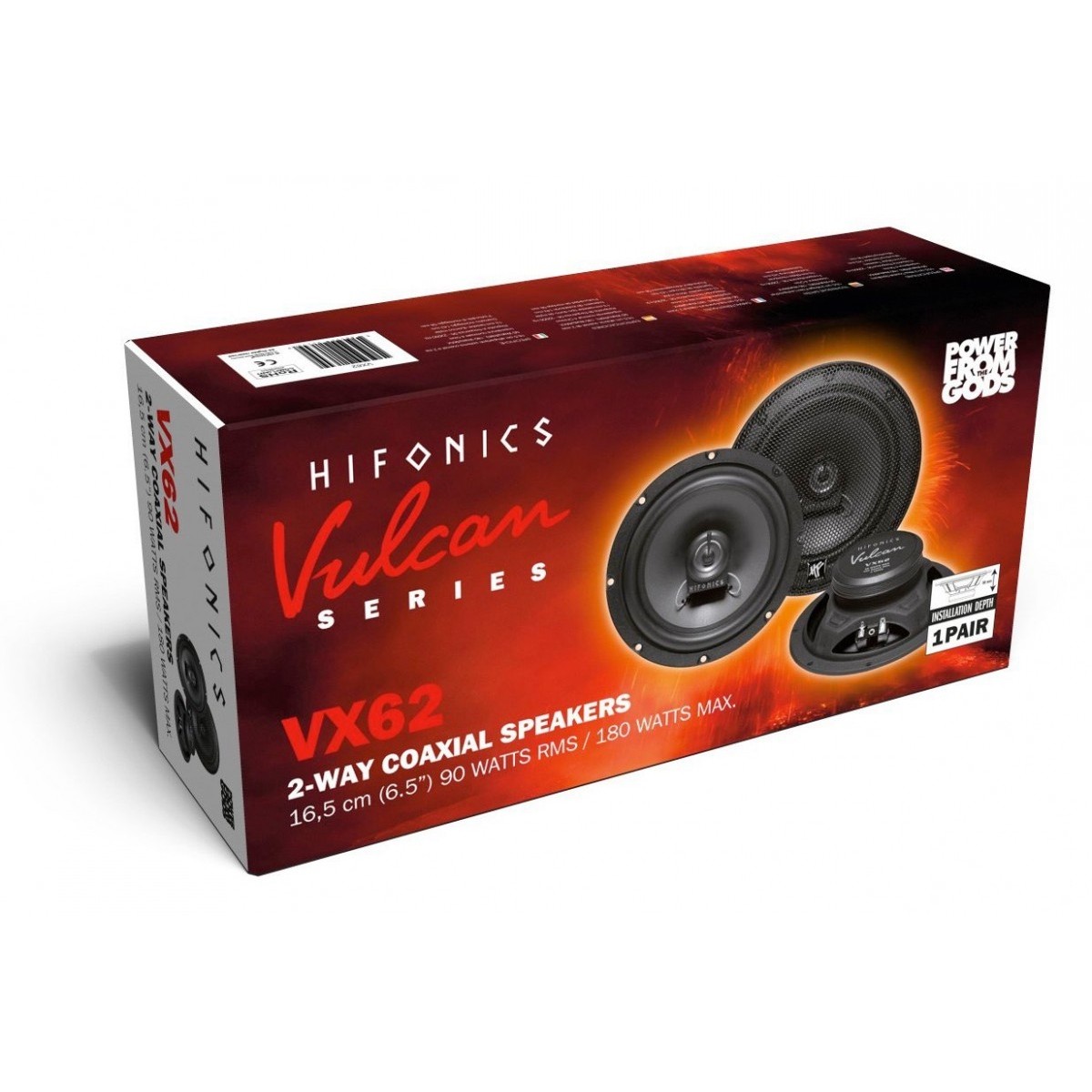 | Тип на високоговорителитеКоаксиални високоговорители: Коаксиалните високоговорители се характеризират с конструкция, наречена всичко в едно. Високочестотният и среднобасовият говорител са в един и същ кош. Предимството е по-лесен монтаж, но поради свързването или близостта на честотните диапазони в един говорител обикновено се понижава качеството на звука. Обикновено в центъра на среднобасовия говорител се намира високочестотният говорител, чиито звукова бобина работи във втората въздушна междина на общия магнитен кръг. Коаксиален говорител с три честотни диапазона се състои от среднобасов говорител, отпред на специален носач е поставен средночестотният говорител и отделен високочестотен. Компонентни високоговорители: Компонентните високоговорители се отличават с разделянето на отделни честотни диапазони: високочестотен + среднобасов + евентуално басов диапазон. Отделните говорители могат да бъдат разположени напълно отделно, което води до по-добро звуково и акустично представяне. В огромното мнозинство от случаите при компонентните високоговорители се доставя и външна кросоувърна мрежа, която разделя високите, средните/среднобасовите и при системи с три честотни диапазона и басовите честоти, както и позволява настройване на нивото в децибели на високочестотния говорител (напр. +2 dB, 0 dB, -2 dB), стръмността (напр. 6 dB/октава, 12 dB/октава) или активно/bi-amp свързване. | Коаксиални двулентови |