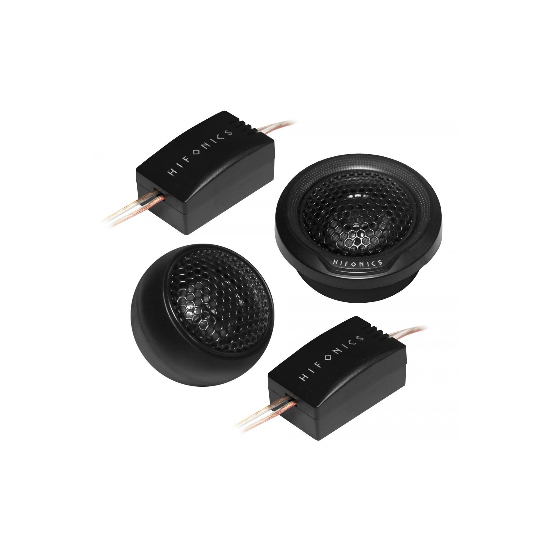 | Тип на високоговорителитеКоаксиални високоговорители: Коаксиалните високоговорители се характеризират с конструкция, наречена всичко в едно. Високочестотният и среднобасовият говорител са в един и същ кош. Предимството е по-лесен монтаж, но поради свързването или близостта на честотните диапазони в един говорител обикновено се понижава качеството на звука. Обикновено в центъра на среднобасовия говорител се намира високочестотният говорител, чиито звукова бобина работи във втората въздушна междина на общия магнитен кръг. Коаксиален говорител с три честотни диапазона се състои от среднобасов говорител, отпред на специален носач е поставен средночестотният говорител и отделен високочестотен. Компонентни високоговорители: Компонентните високоговорители се отличават с разделянето на отделни честотни диапазони: високочестотен + среднобасов + евентуално басов диапазон. Отделните говорители могат да бъдат разположени напълно отделно, което води до по-добро звуково и акустично представяне. В огромното мнозинство от случаите при компонентните високоговорители се доставя и външна кросоувърна мрежа, която разделя високите, средните/среднобасовите и при системи с три честотни диапазона и басовите честоти, както и позволява настройване на нивото в децибели на високочестотния говорител (напр. +2 dB, 0 dB, -2 dB), стръмността (напр. 6 dB/октава, 12 dB/октава) или активно/bi-amp свързване. | Високочестотни |