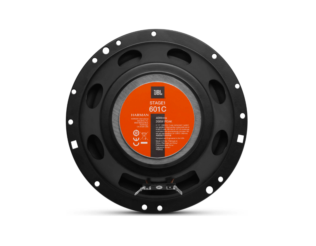 Говорителите JBL Stage1 601C са 6,5" (160 mm) двулентни компонентни говорители, които представляват достъпен ъпгрейд на заводското озвучение за клиентите, които искат по-добър детайл, простор и по-чист звук в сравнение с обичайните коаксиални говорители. Благодарение на отделните високочестотни говорители те предлагат по-природни високи честоти, по-добра стерео сцена и по-балансирано музикално представяне. JBL с серията Stage1 залага на простота, надеждност и типичния забавен звук, който може значително да оживи серийната аудиосистема в автомобила.