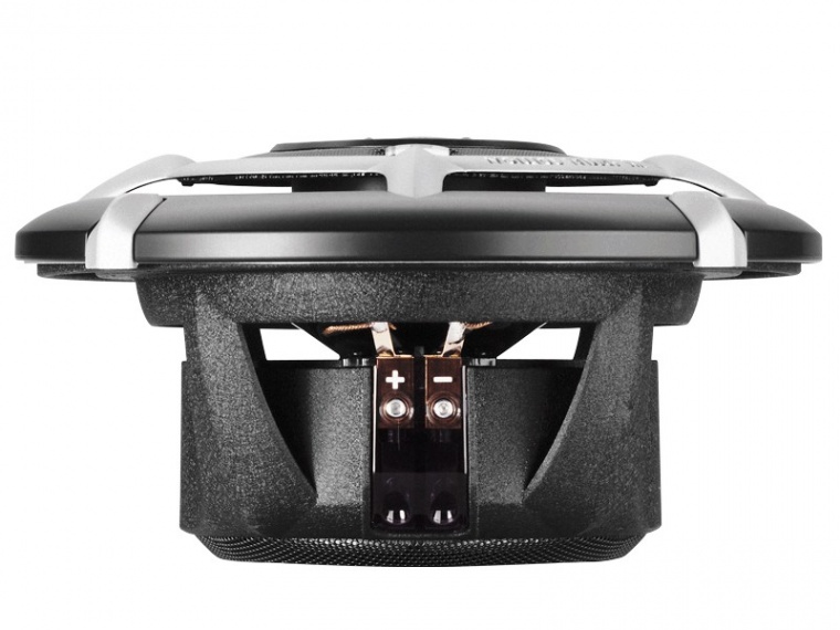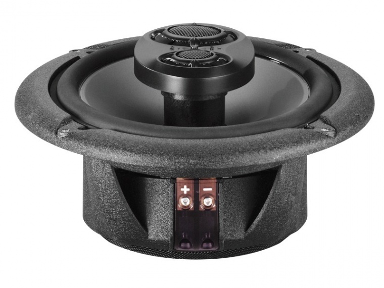 | Тип на високоговорителитеКоаксиални високоговорители: Коаксиалните високоговорители се характеризират с конструкция, наречена всичко в едно. Високочестотният и среднобасовият говорител са в един и същ кош. Предимството е по-лесен монтаж, но поради свързването или близостта на честотните диапазони в един говорител обикновено се понижава качеството на звука. Обикновено в центъра на среднобасовия говорител се намира високочестотният говорител, чиито звукова бобина работи във втората въздушна междина на общия магнитен кръг. Коаксиален говорител с три честотни диапазона се състои от среднобасов говорител, отпред на специален носач е поставен средночестотният говорител и отделен високочестотен. Компонентни високоговорители: Компонентните високоговорители се отличават с разделянето на отделни честотни диапазони: високочестотен + среднобасов + евентуално басов диапазон. Отделните говорители могат да бъдат разположени напълно отделно, което води до по-добро звуково и акустично представяне. В огромното мнозинство от случаите при компонентните високоговорители се доставя и външна кросоувърна мрежа, която разделя високите, средните/среднобасовите и при системи с три честотни диапазона и басовите честоти, както и позволява настройване на нивото в децибели на високочестотния говорител (напр. +2 dB, 0 dB, -2 dB), стръмността (напр. 6 dB/октава, 12 dB/октава) или активно/bi-amp свързване. | коаксиални 3-лентови |