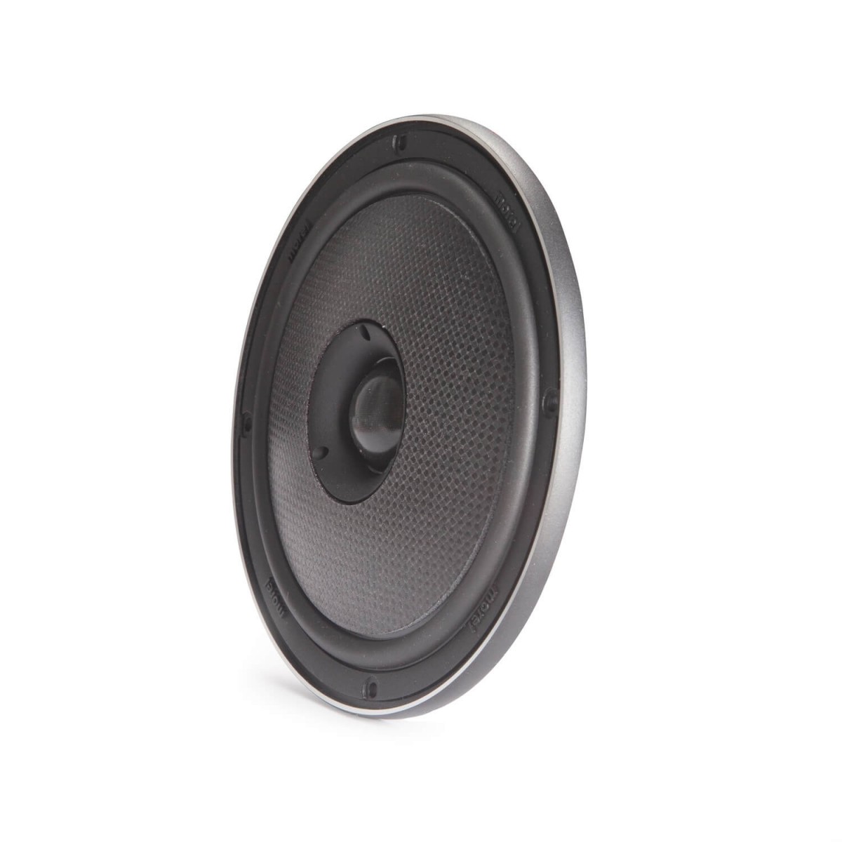 | Тип на високоговорителитеКоаксиални високоговорители: Коаксиалните високоговорители се характеризират с конструкция, наречена всичко в едно. Високочестотният и среднобасовият говорител са в един и същ кош. Предимството е по-лесен монтаж, но поради свързването или близостта на честотните диапазони в един говорител обикновено се понижава качеството на звука. Обикновено в центъра на среднобасовия говорител се намира високочестотният говорител, чиито звукова бобина работи във втората въздушна междина на общия магнитен кръг. Коаксиален говорител с три честотни диапазона се състои от среднобасов говорител, отпред на специален носач е поставен средночестотният говорител и отделен високочестотен. Компонентни високоговорители: Компонентните високоговорители се отличават с разделянето на отделни честотни диапазони: високочестотен + среднобасов + евентуално басов диапазон. Отделните говорители могат да бъдат разположени напълно отделно, което води до по-добро звуково и акустично представяне. В огромното мнозинство от случаите при компонентните високоговорители се доставя и външна кросоувърна мрежа, която разделя високите, средните/среднобасовите и при системи с три честотни диапазона и басовите честоти, както и позволява настройване на нивото в децибели на високочестотния говорител (напр. +2 dB, 0 dB, -2 dB), стръмността (напр. 6 dB/октава, 12 dB/октава) или активно/bi-amp свързване. | Коаксиални двулентови |