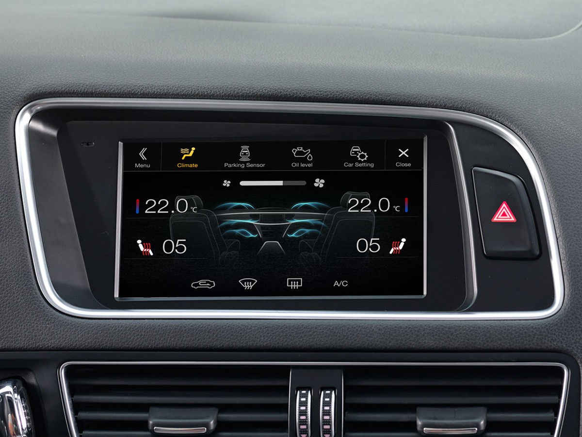 X701D (AVN Black Box), LCD-701D (AVN дисплей), G-KEY-AUDI (контролен панел), KCX-V100-A (CAN интерфейс), KAE-242DA (DAB антена), рамка за закрепване на дисплея за Audi Q5| Каталожен номер | X701D-Q5 |