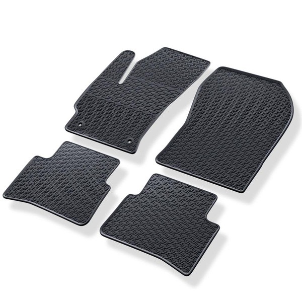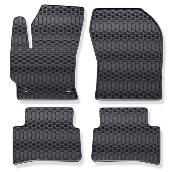 Премиум гумените автомобилни стелки Geyer & Hosaja предлагат първокласна защита на интериора на автомобила, модерен външен вид и максимална функционалност. Те са изработени от качествен, здравословно безопасен каучук без мирис и благодарение на прецизната форма прилягат перфектно към пода на конкретния модел автомобил. Техният характерен дизайн в стил "пчелна пита" не само изглежда модерен, но и ефективно задържа вода, кал и малки замърсявания. Повдигнатият ръб предотвратява преливане, противохлъзгащата повърхност осигурява стабилност, а здрава конструкция гарантира дълъг живот дори при ежедневна употреба. Лесни за поддръжка, те дълго запазват формата си и благодарение на премиум изпълнението повишават комфорта и естетиката на интериора на вашия автомобил.| Каталожен номер | GH-928/4C |