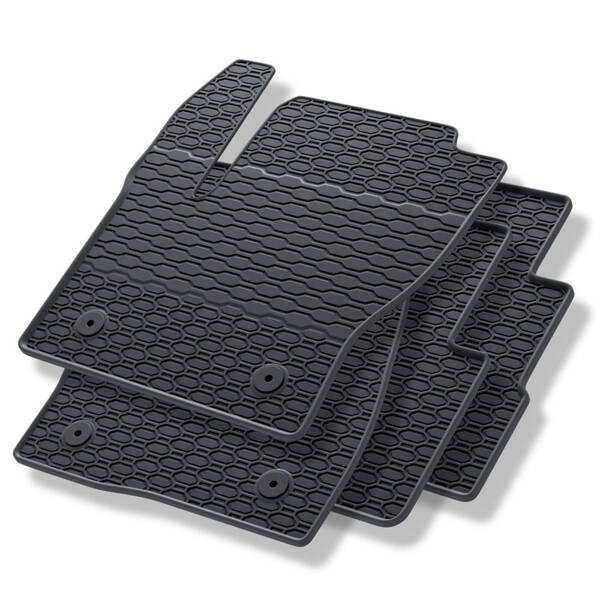 Премиум гумените автомобилни стелки Geyer & Hosaja осигуряват отлична защита на интериора, модерен вид и максимална функционалност. Произведени са от качествен, здравословно безопасен и без мирис каучук и благодарение на прецизната форма прилягат съвършено към пода на конкретния автомобилен модел. Характерният им десен "восъчна пита" не само придава модерен вид, но и ефективно задържа вода, кал и дребни замърсявания. Повдигнатият ръб предотвратява преливане, противохлъзгащата повърхност осигурява стабилност, а здрава конструкция гарантира дълъг живот дори при ежедневна експлоатация. Лесни са за поддръжка, запазват формата си във времето и благодарение на премиум изпълнението повишават комфорта и естетиката на интериора на вашия автомобил.| Каталожен номер | GH-870/4C |