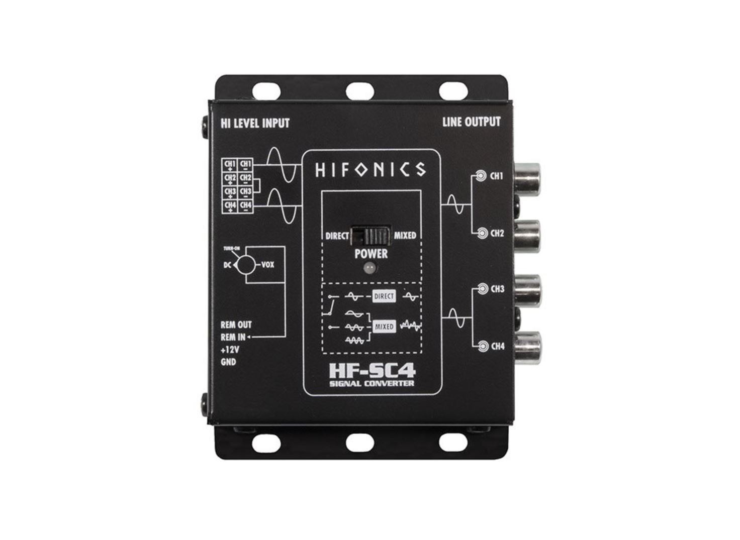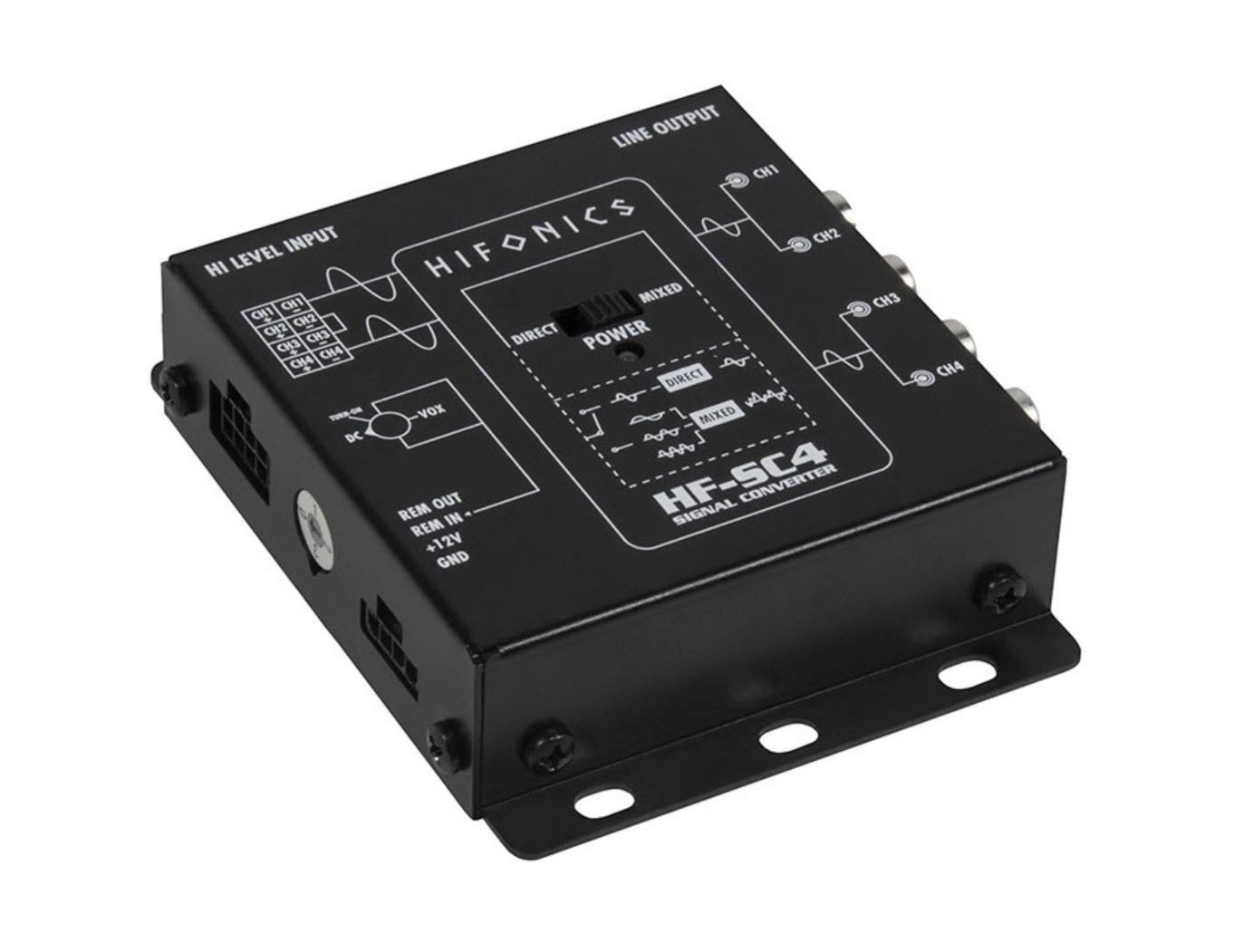Преобразувателите на сигнал от Hifonics впечатляват със своите отлични звукови характеристики. Разработчиците са придавали голямо значение на отличните технически показатели още в етапа на концепцията. И това действително се вижда и чува — изключително високи отношения сигнал/шум 115 - 121 dB с едновременно много ниски нива на изкривяване от 0,001 %. Те са проектирани за свързване към стандартни автомобилни радиа, които доставят до 50 W RMS на канал при 2 ома. Като допълнителна особеност многоканалните конвертори разполагат с интегрирана функция за сумиране. Този блок е „задължителен“ за много нови автомобили, когато не може да се прослуша музикалният сигнал „на един ход“, защото честотните диапазони за фабрично монтираните високоговорители са били електрически отделени. Обикновен конвертор би бил тук напълно излишен. С HF-SC конверторите разделените изходни сигнали от фабричната система могат лесно да бъдат отново обединени чрез активиране на функцията "MIXED". Софистицираната електроника на изходите генерира пълнообхватен сигнал, с който могат оптимално да се захранят външни DSP или усилватели. Благодарение на EPS конверторите могат лесно да се свържат и към фабрични радиа, които имат т.нар. схема за откриване на натоварване. Допълнителна функция за потискане на смущения може да се активира чрез джъмпери "Floating Ground".