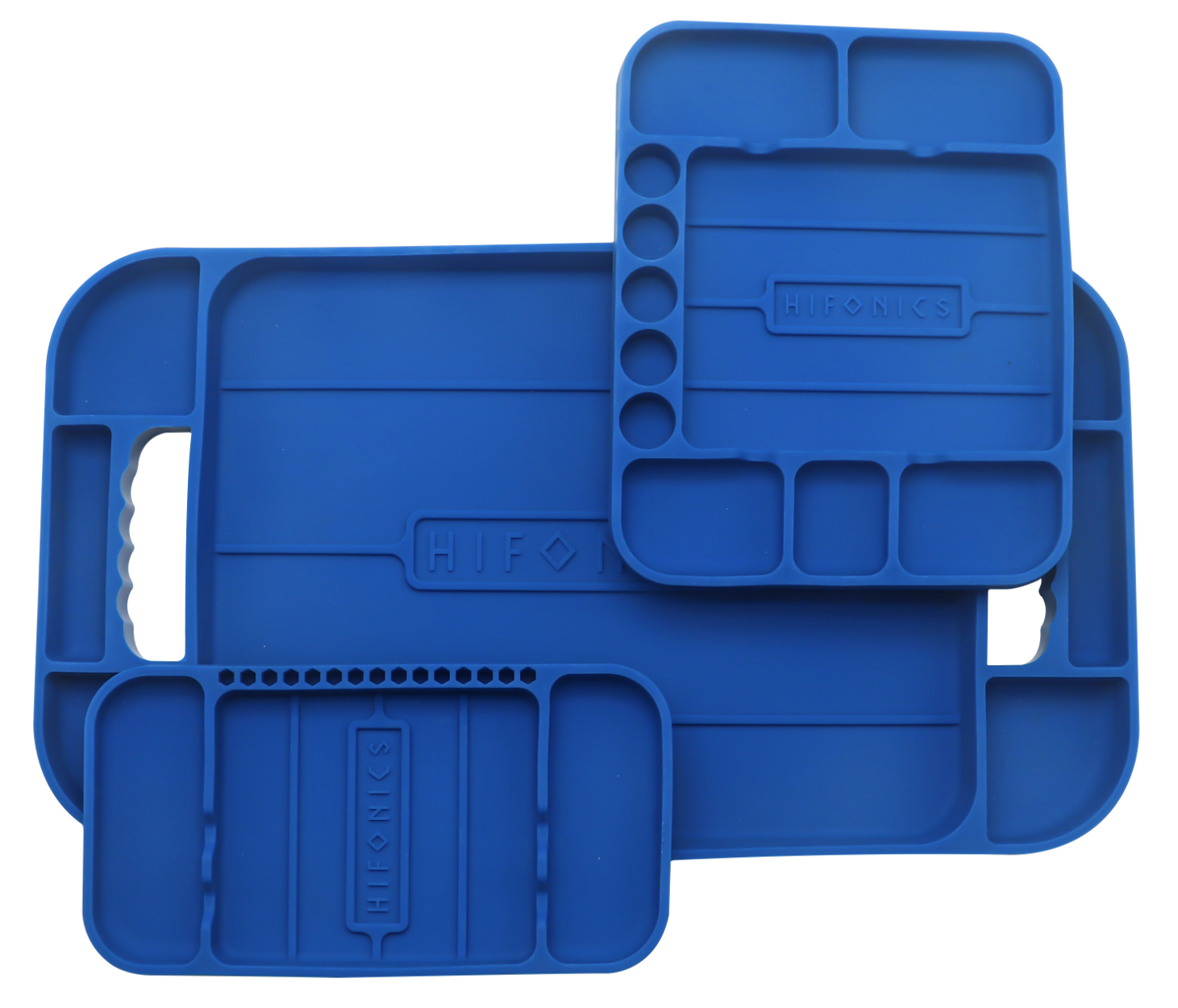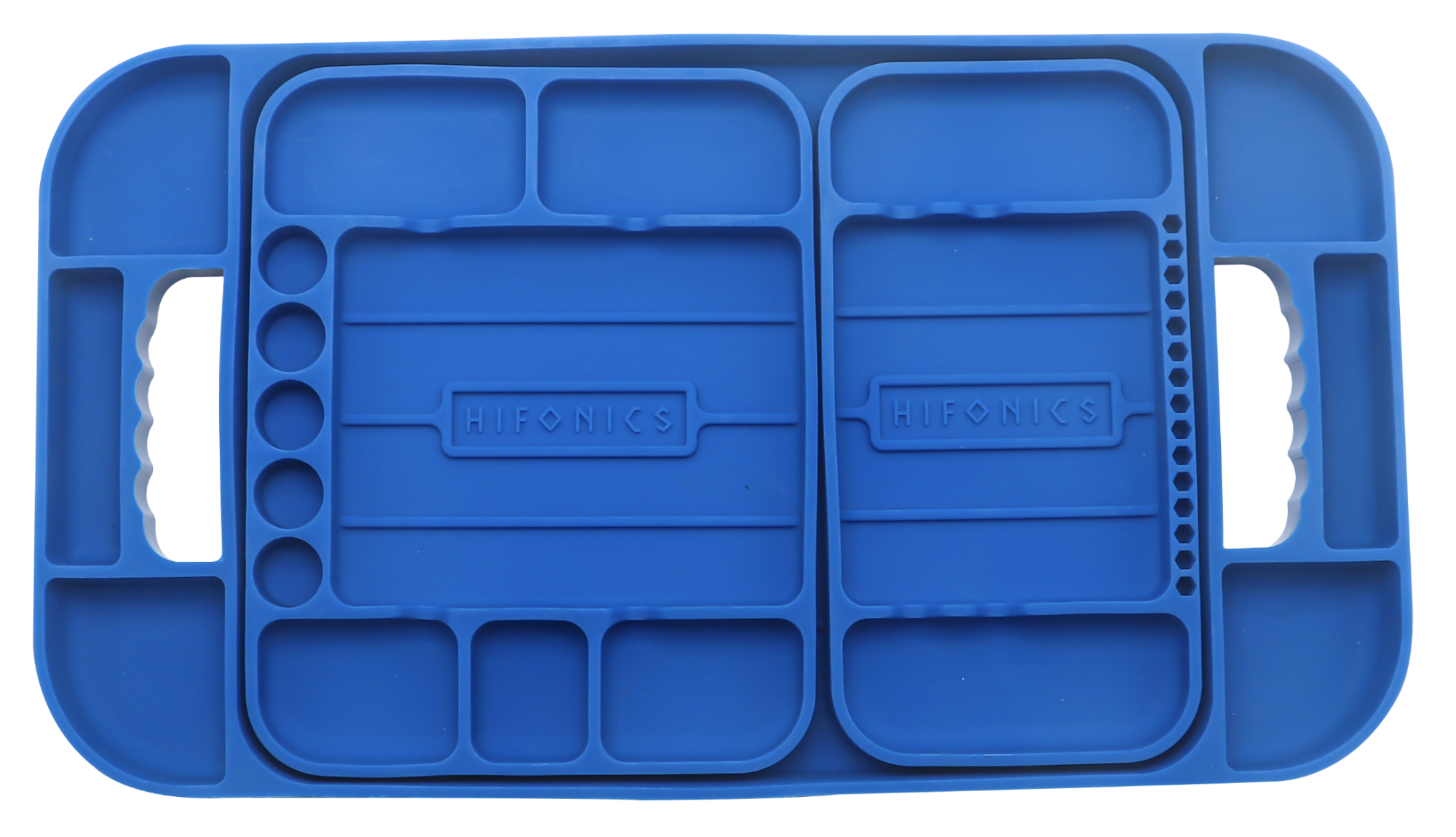 \n\nБлагодарение на практичните силиконови купички от комплекта HiFonics HF-STT такива проблеми вече са в миналото. Всички необходими инструменти и материали просто поставете в една от трите купички и ги позиционирайте върху двигателя или в пространството за краката. Благодарение на много гъвкавия силиконов материал купичките перфектно се адаптират към повърхността и не повреждат никакви повърхности. Те дори са оборудвани с отвори за битове и накрайници и с други полезни отделения за много инструменти и материали.