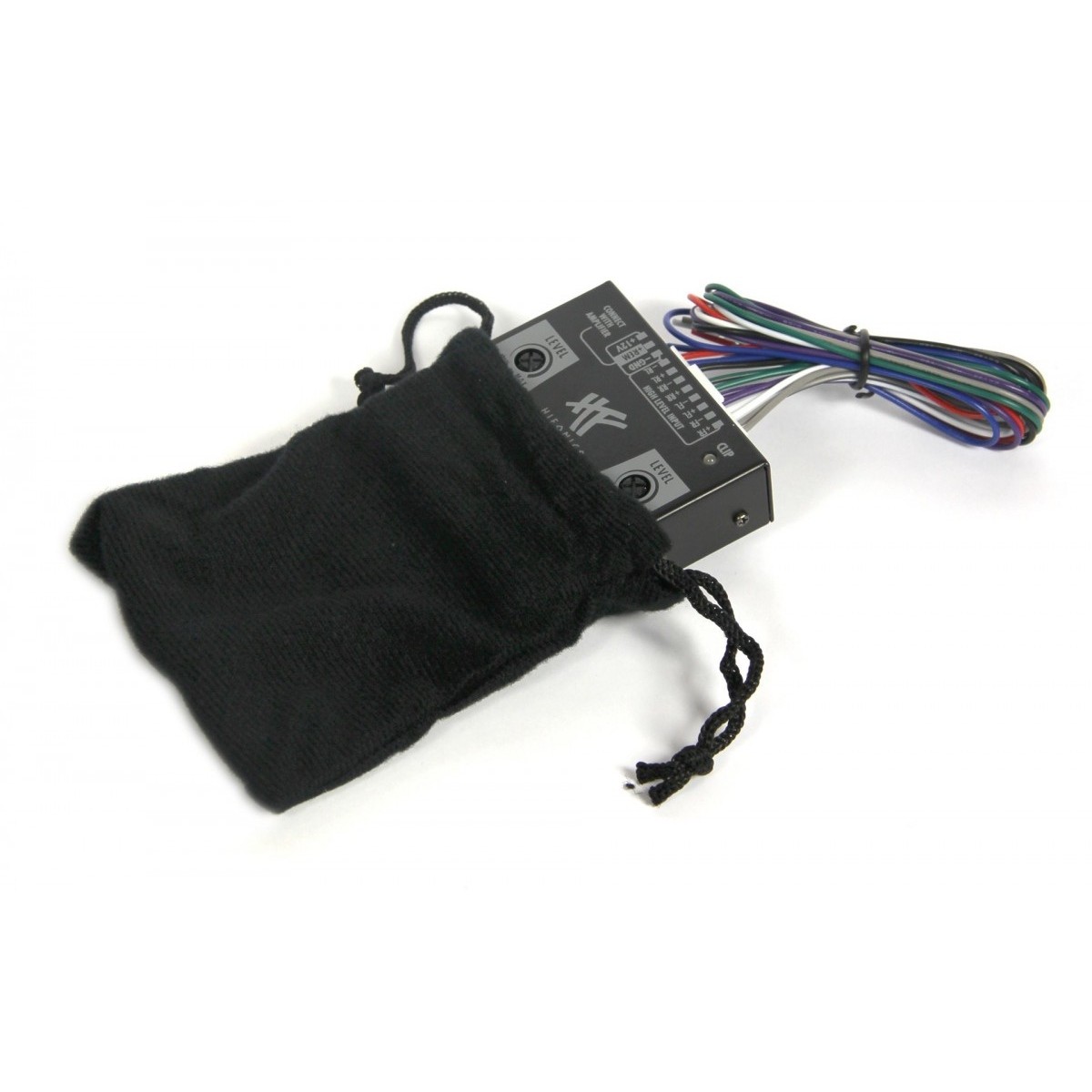 Активен High-Low адаптер, подходящ за свързване към всяка автомагнитола. Ако искате да включите четириканални и повечеканални усилватели към оригиналната ви система, този адаптер е идеален. Той съдържа 4 канала и активно дистанционно включване, което в много модерни автомобили е трудно да се получи. Съдържа контрол на отделните канали и тяхната входна чувствителност, както и предупредителен LED индикатор при претоварване. Качеството на използваните компоненти предотвратява изкривявания. В комплекта е включен и кадифен калъф, който може да се използва за защита на устройството след инсталация.