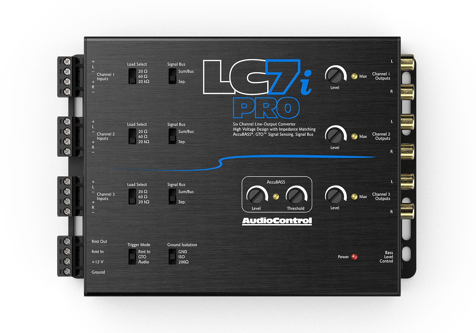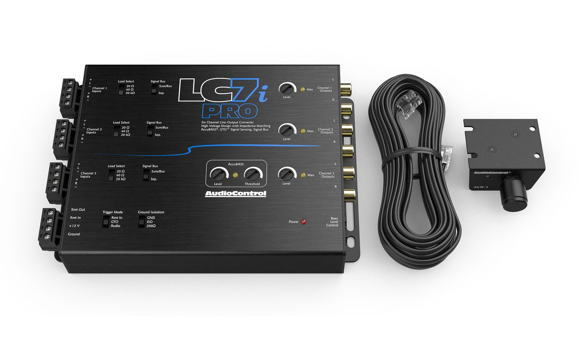 AudioControl LC6i PRO е напреднал шестканален line-out конвертор / hi/low преобразувател с патентованата функция AccuBASS®, проектиран за интеграция и в най-взискателните фабрични аудиосистеми. Благодарение на технологията LMC™ (Load Matching Circuit) той премахва проблемите със съвместимостта и осигурява чист, мощен сигнал за вашите усилватели. Гъвкавите режими на включване (GTO™ Signal Sense, детекция на аудио сигнал или 12 V remote вход) улесняват и ускоряват инсталацията. AccuBASS® допълнително възстановява басите, потиснати от фабричната обработка на сигнала, а включеният контролер ACR-1 позволява удобно регулиране на субуфера директно от мястото на водача. Благодарение на компактния си дизайн LC6i PRO е идеалното решение, ако искате да повишите фабричното озвучаване на автомобила си до истинско преживяване.