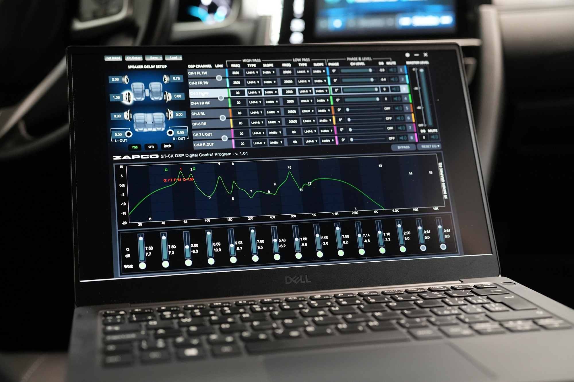 Инсталация на усилвател с DSP процесор Zapco в автомобил Honda Civic, включително измерване на честотната характеристика на говорителите и детайлно настройване на звука на DSP процесора. Собственикът на този автомобил вече имаше при нас инсталирани компонентни говорители German Maestro CS 6508 IV, които се захранваха само от фабричното радио. След време той реши да подобри звука чрез добавяне на усилвател и тъй като целта беше да се извлече максимума от инсталираните компоненти, не можехме да изберем друг усилвател освен Zapco. Той осигурява на избраните компоненти не само достатъчна мощност, но и преди всичко много качествен звук. В края на инсталацията разбира се дойде време за измерване на честотната характеристика на всички говорители и детайлно настройване на звука на DSP процесора. С помощта на калибриран микрофон измерихме всички недостатъци и пречки на конкретния автомобил и настроихме пространствената корекция на еквалайзера за всеки говорител в автомобила. След това настроихме времевите корекции, нивата, честотните филтри и други възможности, които ни предоставя DSP процесорът. Резултатът е верен звук, съобразен не само с този конкретен автомобил, но и с слушателя.