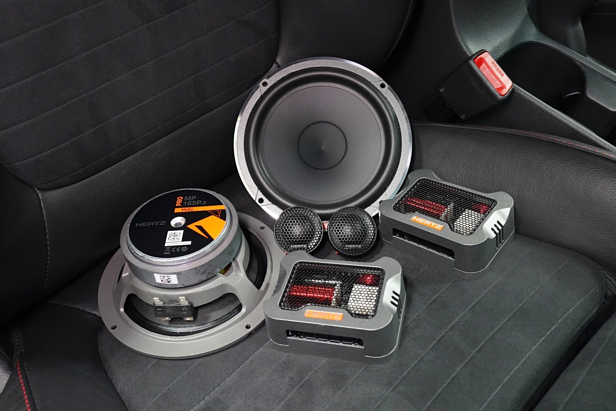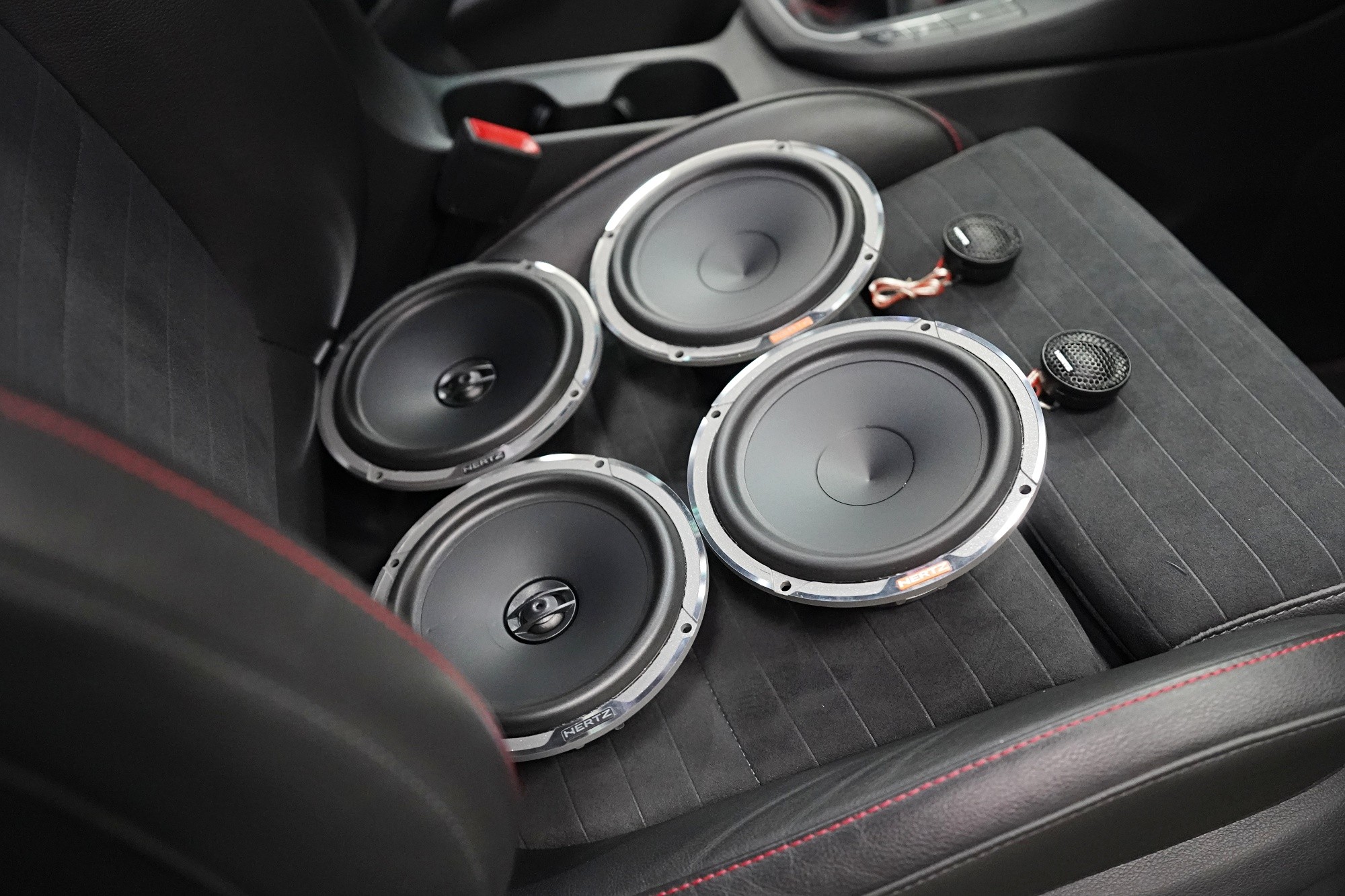 Инсталация на ново озвучаване в автомобил Hyundai i30 N. Базовите заводски говорители в този автомобил имат под средно качество на звука и за по-взискателните слушатели тяхната смяна е практически задължителна. Най-достъпният начин за подобряване на озвучаването е смяната на заводските говорители. За такива цели е необходимо да се избират говорители с висока чувствителност, за да може фабричното радио със слаб усилвател да ги задвижи. Ако към това добавите и намалена импеданс до 3 Ohm и много напреднал звук, идеалните говорители са факт. Конкретно става въпрос за говорителите Hertz от серията Mille Pro. Към всичко споменато можем да прибавим и отличната изработка. Тези говорители са наистина изключителни и ако бюджетът го позволява, с удоволствие ги инсталираме както на фабрични радиа, така и при външен усилвател. В предните врати инсталирахме компонентни говорители, а в задните — коаксиални. Вратите, разбира се, бяха старателно шумоизолирани с първокласни материали Comfortmat, което позволява подобряване на басовата секция и звученето на средночестотния говорител. Повече информация ще намерите в нашия фоторепортаж.