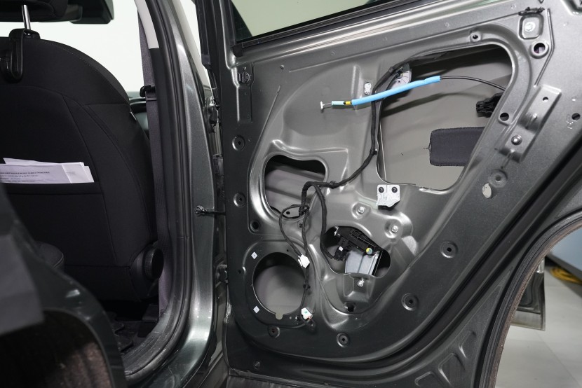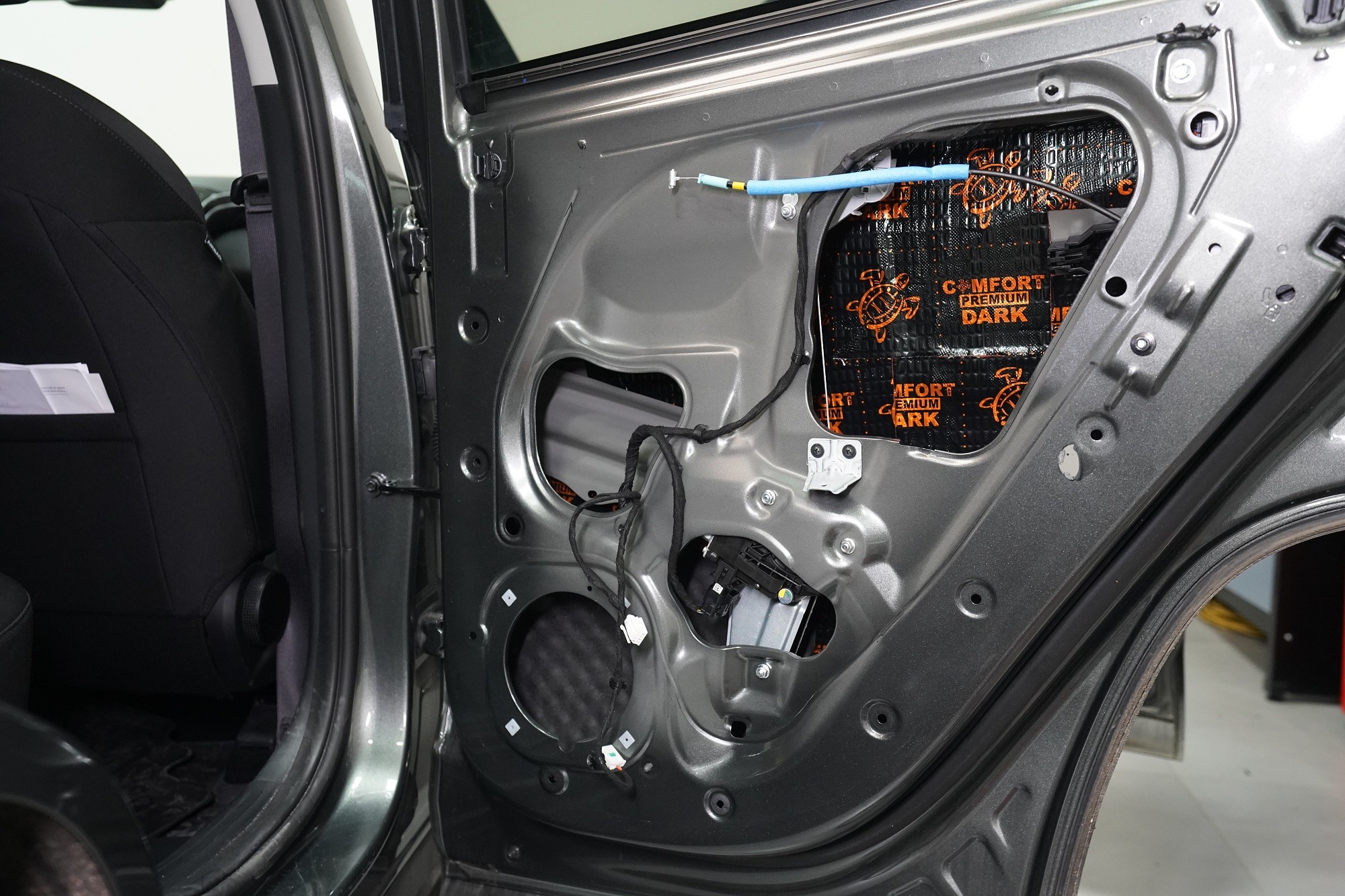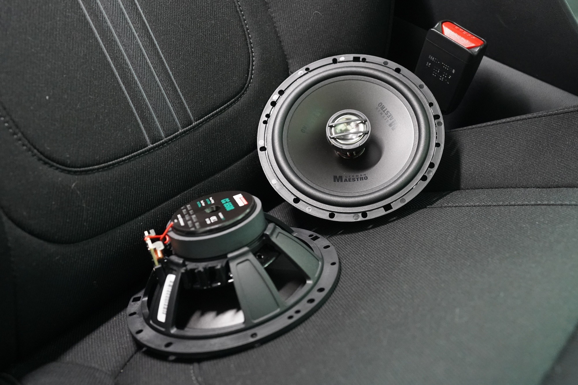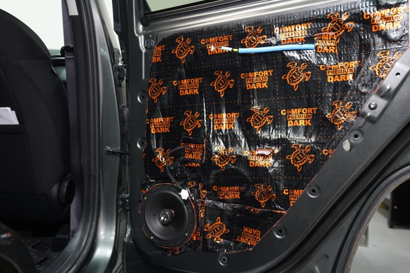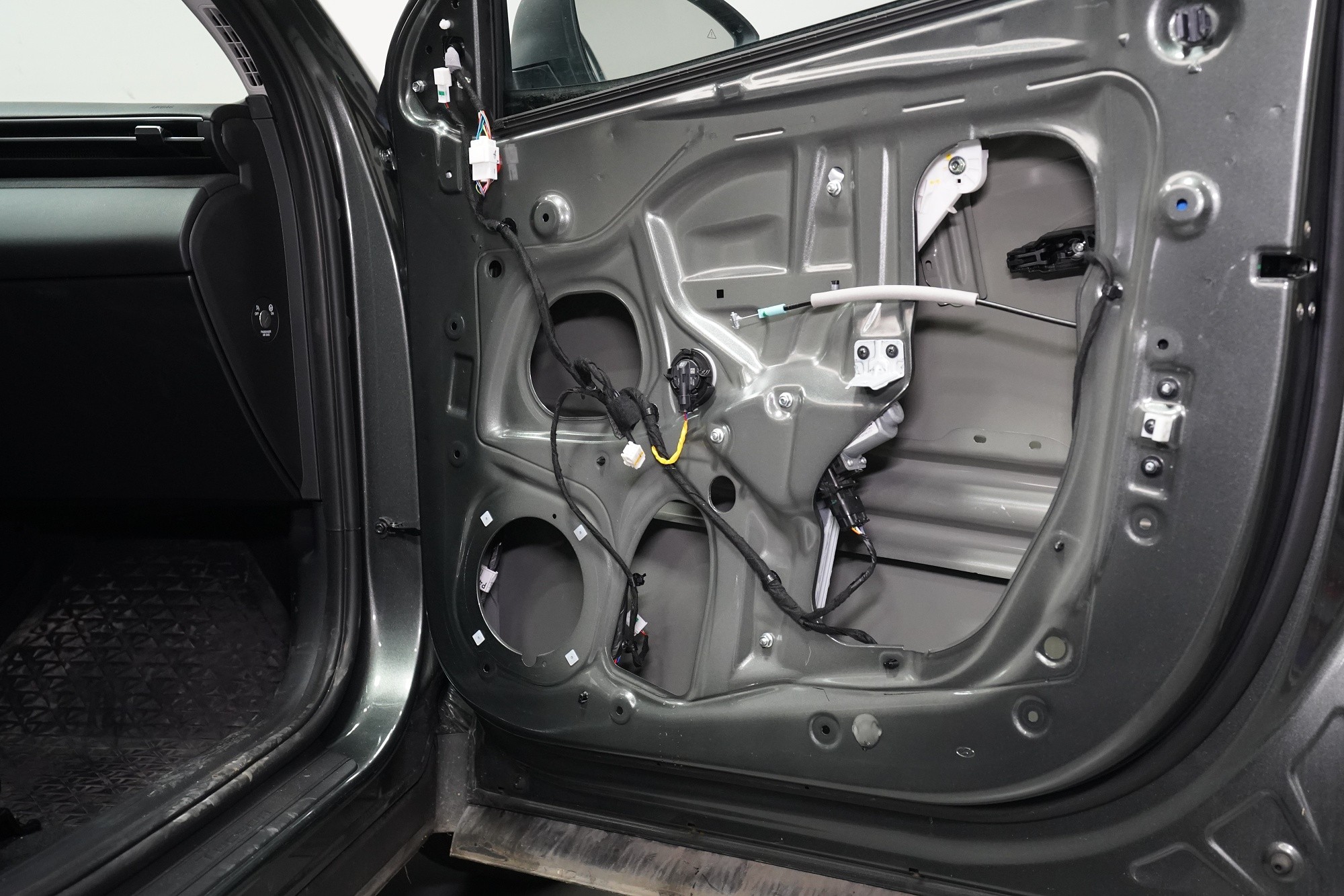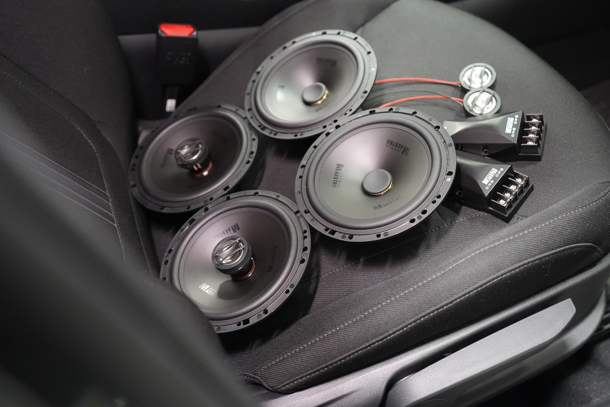Смяна на високоговорителите в автомобил Hyundai Tucson от най-новото поколение. Най-простото и също най-икономично решение за подобряване на звука на заводската озвучителна система е смяната на високоговорителите при запазване на заводската автомагнитола. За това е необходимо да се изберат високоговорители с оптимална мощност и висока чувствителност, които позволяват свързване към заводска автомагнитола с по-ниска мощност. Нашият клиент, при прослушване на демопанела в магазина, избра комплект високоговорители на немския производител German Maestro, които все още се произвеждат ръчно в Германия. Въпреки че хартиените параметри на тези високоговорители не впечатляват, реалността е съвсем друга и въпреки посочената чувствителност под 90 dB, високоговорителите с лекота се справят с мощността на заводската автомагнитола. Всички врати естествено бяха шумоизолирани с премиум материали Comfortmat, което ще гарантира особено подсилване на басовия компонент на среднобасите и подобряване на техния звук. Изключително ниското тегло на антивибрационния материал Comfortmat Premium Dark позволява безпроблемна работа с вратите и в бъдеще.