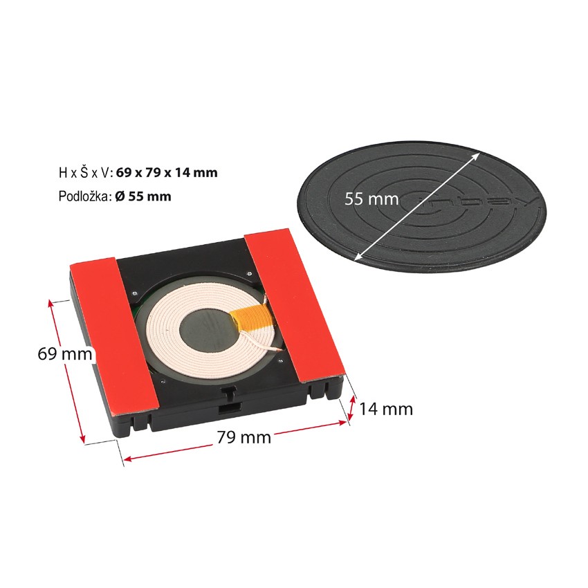 - За инсталация е необходимо да се прикрепи печатна платка с бобини от долната страна на плоска пластмасова повърхност в автомобила; отгоре е залепена гумена противохлъзгаща подложка с отбелязан център за поставяне на мобилния телефон. Разстоянието между бобините и повърхността за поставяне на телефона трябва да бъде 3 - 8 mm.