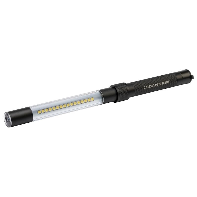 Scangrip Line Light R е изключително мощно инспекционно осветително тяло и фенер в едно. Светлинен поток до 400 лумена. Scangrip Line Light R със своя тънък дизайн (25 mm) позволява да осветите дори най-тесните и трудно достъпни зони. Концентрира светлината в ъгъл 75°, което осигурява изключително ярко и силно осветление на цялото работно пространство. Наличен е гъвкав врат с мощен вграден магнит или вакумен държач като оптимално аксесоар.