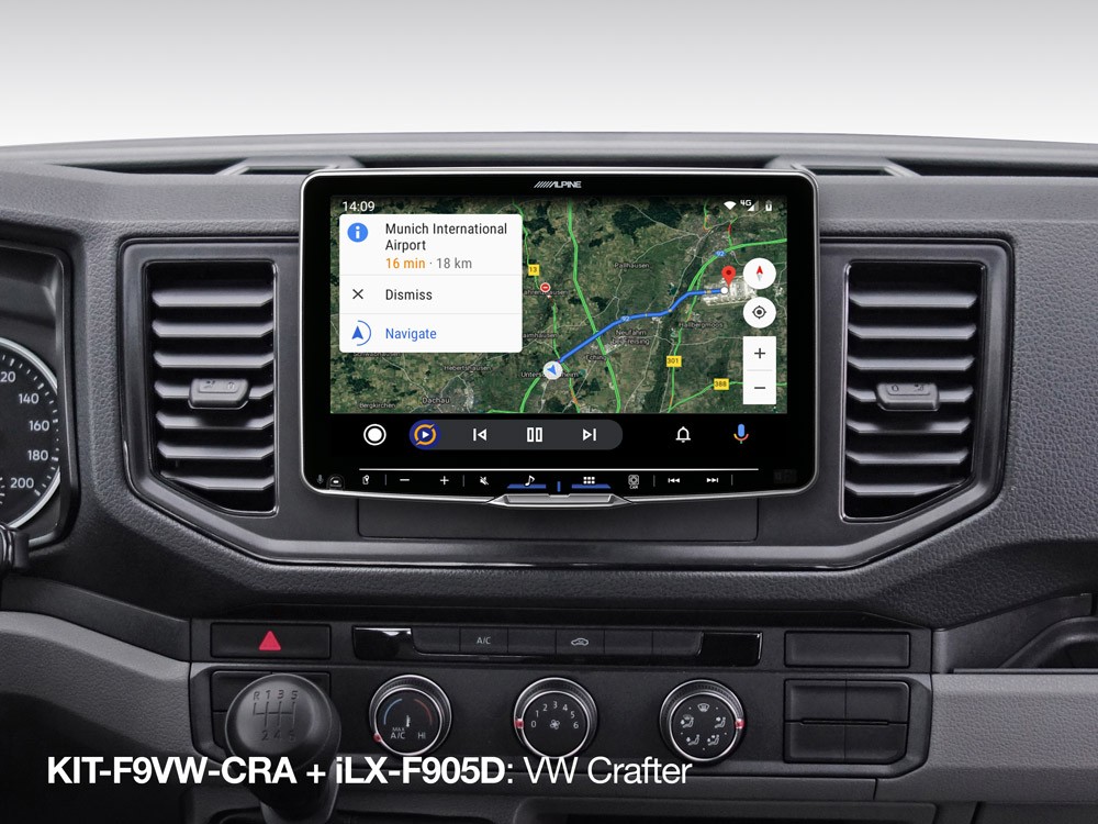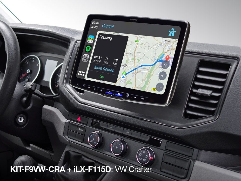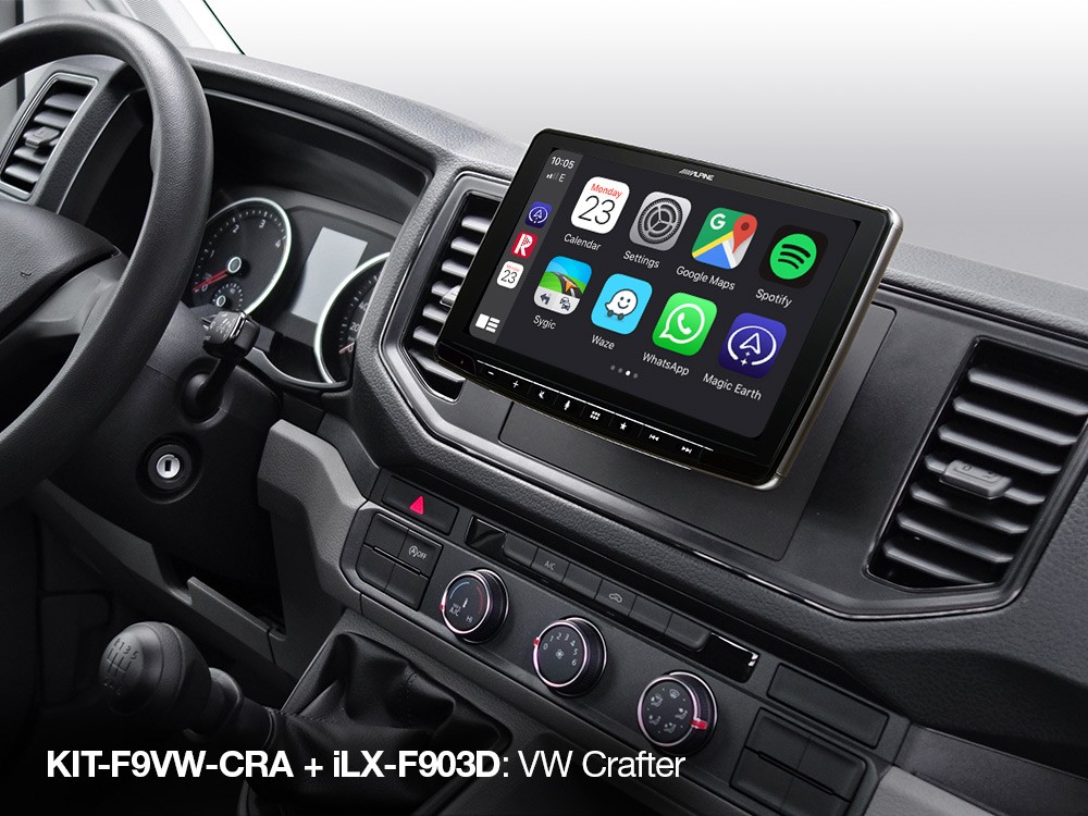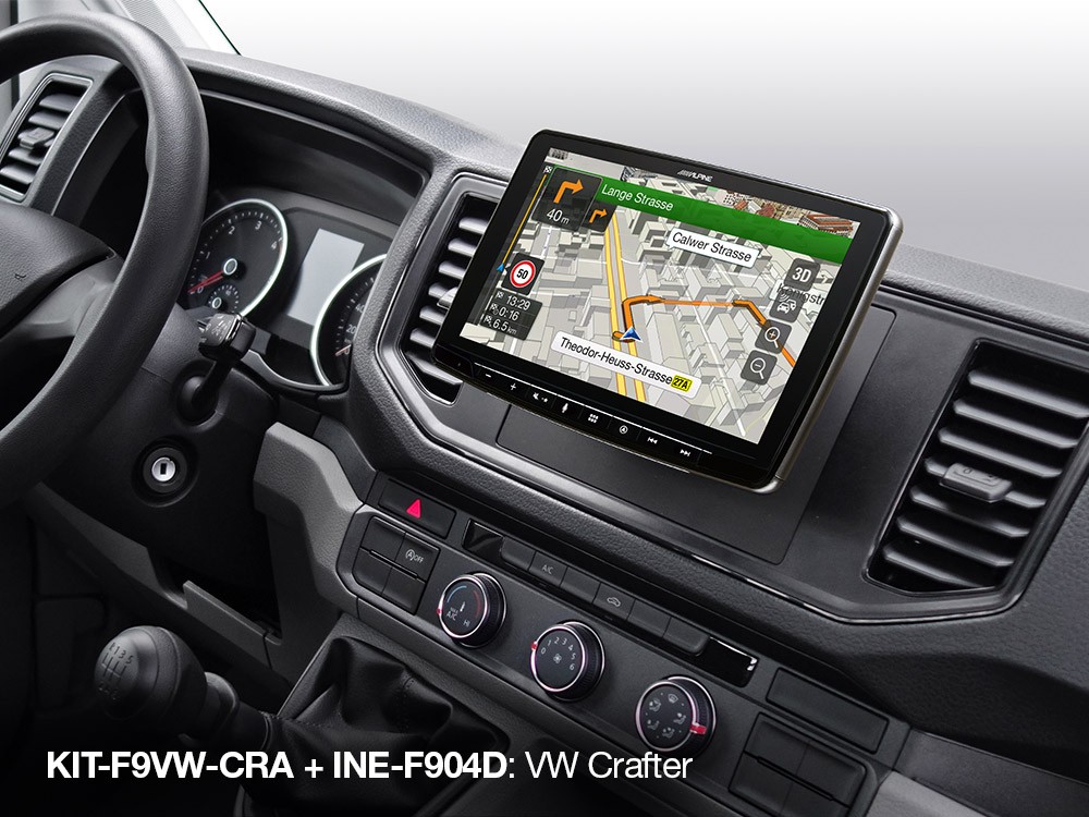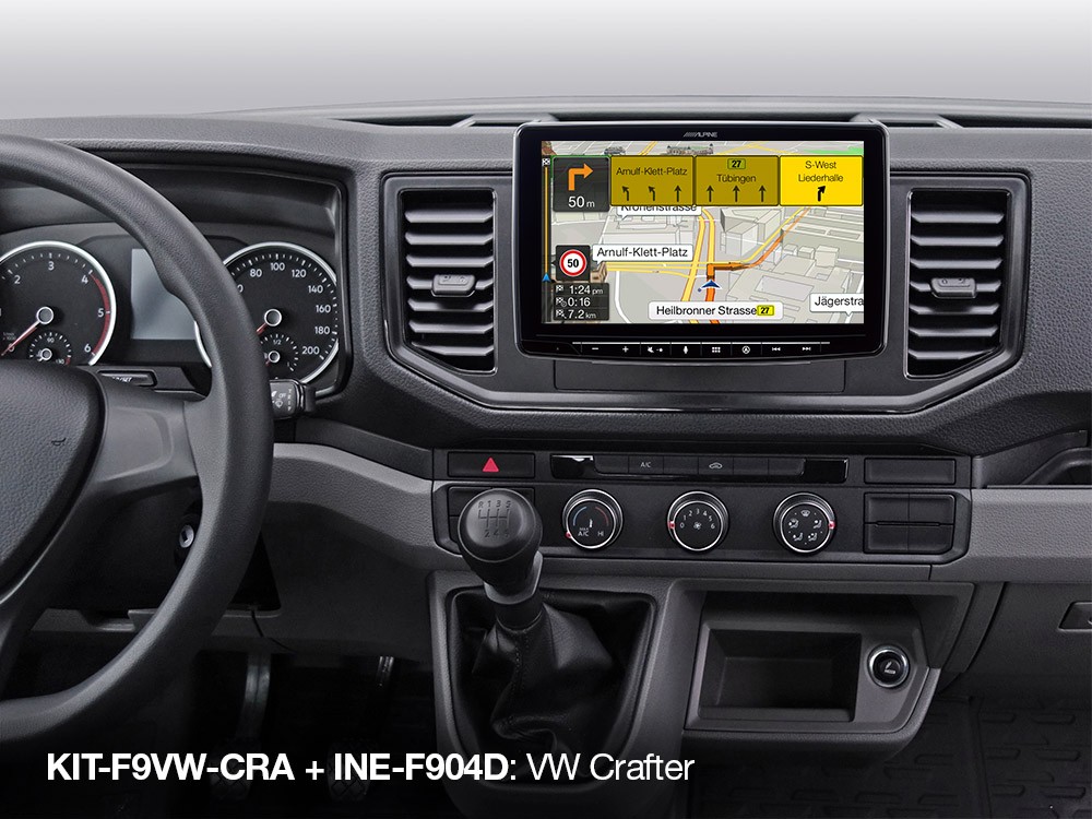 Този инсталационен комплект позволява лесен и чист монтаж на Alpine Halo11 (iLX-F115D), Halo9 (iLX-F905D, iLX-F903D) или Alpine Halo9 Navi (INE-F904D / INE-F904DC) в автомобил Volkswagen Crafter от моделната 2017 г. KIT-F9VW-CRA включва специално изработена рамка и монтажни скоби (без кабелен пакет или интерфейс).