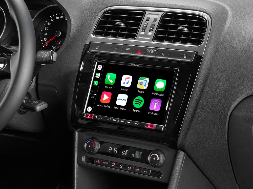Alpine 8" инсталационен комплект за Volkswagen Polo 5 / GTI (6C) в комбинация с X803D-U / X802D-U предлага първокласна навигация включително насочващи стрелки стъпка по стъпка на мултифункционалния дисплей в съчетание със съвместимост DAB+, Android Auto и Apple CarPlay.