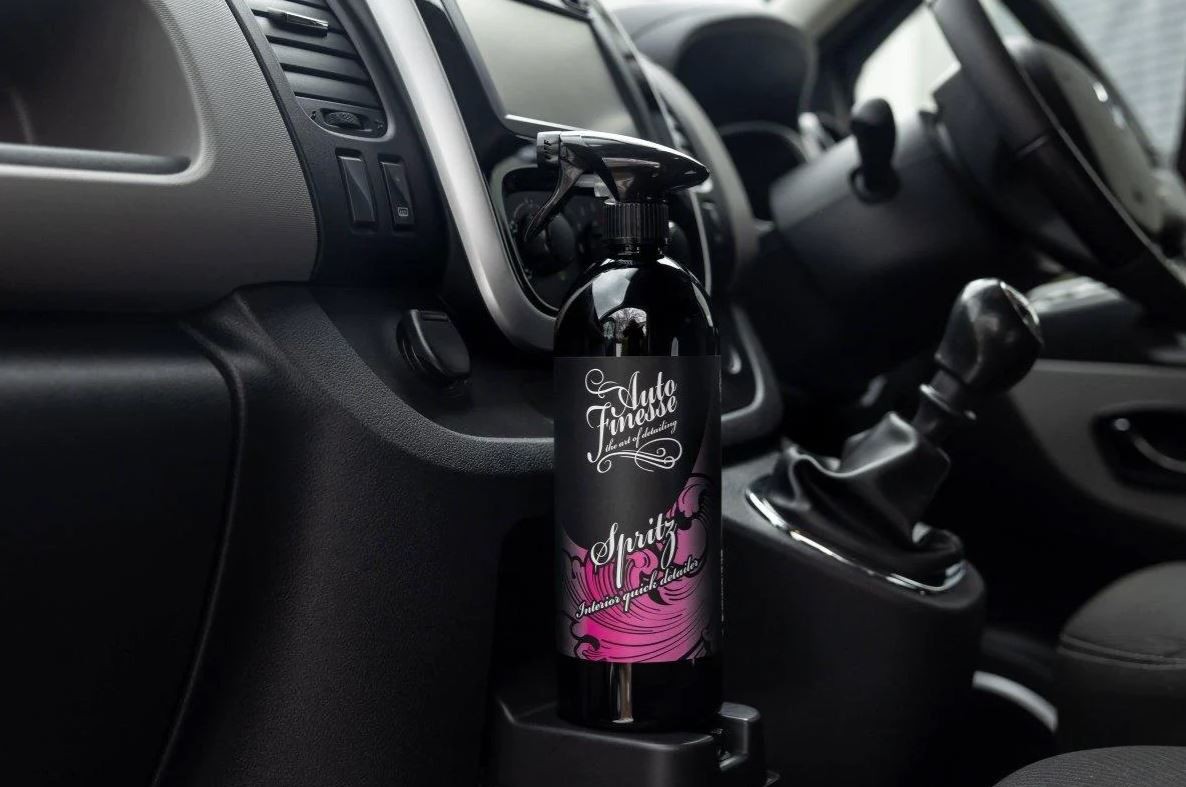 Auto Finesse Spritz Interior Detail Spray е висококачествен детайлер с UV инхибитори и антистатични добавки. Auto Finesse Spritz се използва, когато искате да запазите интериора на автомобила в състоянието, в което е напуснал завода на производителя. Spritz е подходящ за всички повърхности в интериора. Предназначен е за почистване на леко замърсени повърхности и за защита на интериора, като защитава пластмасите и винила от UV лъчи и от прекомерно натрупване на прах. Неговите антистатични свойства незабавно предотвратяват по-нататъшното отлагане на прахови частици и така интериорът остава значително по-дълго чист. Spritz е на водна основа и оставя всички повърхности оригинални, естествено матови и нелепкави. Това е най-бързият начин да поддържате интериора на колата чист и без петна. Напълно безопасен е за употреба върху всички пластмасови, винилови, гумени, метални и кожени части в интериора на автомобила. Също така е щадящ към всички видове тъч и LCD екрани. Въпреки че материалите в автомобилните интериори се промениха значително, е необходимо да се грижите за тях, за да останат като нови. Spritz е интериорен детайлер на 21-ви век, създаден да полага перфектна грижа за модерните пластмасови повърхности. Както всички продукти Auto Finesse, така и Spritz е продукт от професионален клас, предназначен за опитни детайлъри. Благодарение на високата ефективност и леснотата на приложение, дори начинаещ ще постигне отлични резултати с този препарат.