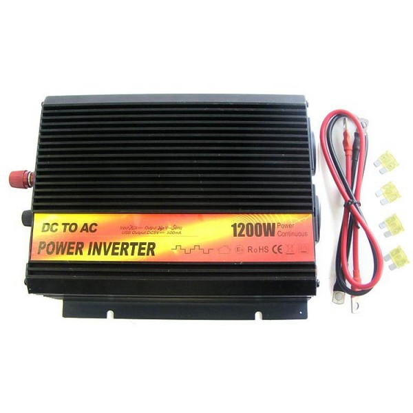 Инвертор с максимална мощност 1200W е подходящ за използване на уреди на 230V на място без достъп до електрическата мрежа. Инверторът преобразува постоянното 24V напрежение от акумулатора в променливо 230V напрежение, каквото има в обикновените електрически контакти.