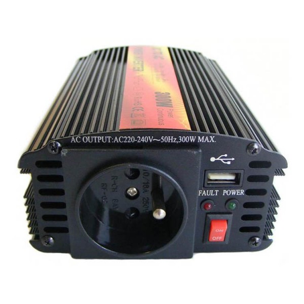 Инвертор с максимална мощност 300W е подходящ за използване на малки уреди на 230V на място без достъп до електрическата мрежа.
