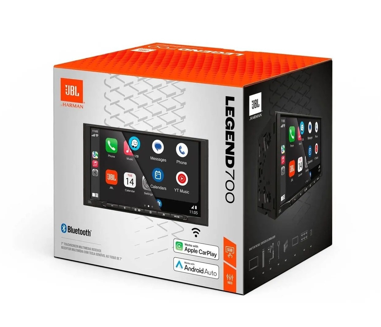 JBL Legend 700 е 2DIN мултимедийно авторадио с 7” капацитивен тъч дисплей, проектирано като модерно управляващо центърче на аудио системата в автомобила. Предлага пълна интеграция на смартфон чрез безжичен Apple CarPlay и Android Auto, което дава на водача директен достъп до навигация, музика, съобщения и обаждания без необходимост от физическо свързване с кабел. Авторaдиото поддържа широк набор от източници на сигнал, включително Bluetooth 5.0, USB вход, AUX вход и AM/FM тунер. Bluetooth позволява безжично стриймване на музика и handsfree телефонни разговори с поддръжка на телефонния указател и показване на информация за възпроизвежданите тракове. Тъч управлението в комбинация с интуитивен интерфейс осигурява удобна експлоатация по време на шофиране. Шестканални линейни изходи с напрежение 4 V (предни, задни, субуфер) позволяват директно и качествено свързване на външни усилватели и активни субуфери. Вграденото управление на субуфера позволява бърза корекция на нивото на басовата част директно от предния панел без нужда от промени в настройките на усилвателя. Оборудването включва и 16-лентов еквалайзер с времева корекция, който позволява детайлна настройка на звука спрямо акустичните условия в конкретния автомобил и разположението на тонколоните. Вътрешният усилвател с максимална мощност 4 × 50 W е подходящ за директно захранване на тонколоните, като системата може да се разшири с външни усилватели за по-висока мощност и контрол на звука. JBL Legend 700 е подходящ избор за потребители, които искат модерно мултимедийно авторадио с тъч дисплей, напреднали възможности за настройка на звука и пълна готовност за изграждане на качествена аудио система.