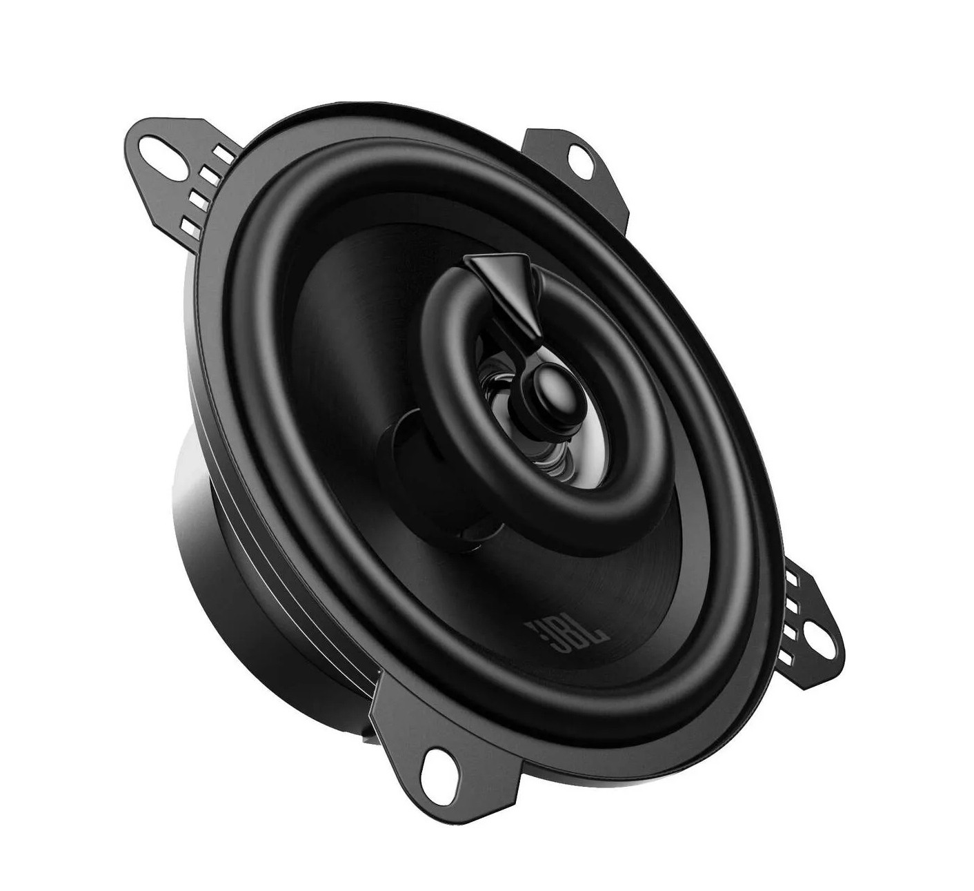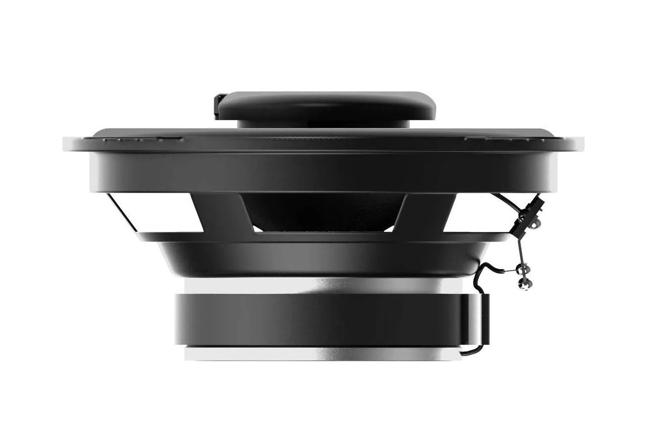 | Тип на високоговорителитеКоаксиални високоговорители: Коаксиалните високоговорители се характеризират с конструкция, наречена всичко в едно. Високочестотният и среднобасовият говорител са в един и същ кош. Предимството е по-лесен монтаж, но поради свързването или близостта на честотните диапазони в един говорител обикновено се понижава качеството на звука. Обикновено в центъра на среднобасовия говорител се намира високочестотният говорител, чиито звукова бобина работи във втората въздушна междина на общия магнитен кръг. Коаксиален говорител с три честотни диапазона се състои от среднобасов говорител, отпред на специален носач е поставен средночестотният говорител и отделен високочестотен. Компонентни високоговорители: Компонентните високоговорители се отличават с разделянето на отделни честотни диапазони: високочестотен + среднобасов + евентуално басов диапазон. Отделните говорители могат да бъдат разположени напълно отделно, което води до по-добро звуково и акустично представяне. В огромното мнозинство от случаите при компонентните високоговорители се доставя и външна кросоувърна мрежа, която разделя високите, средните/среднобасовите и при системи с три честотни диапазона и басовите честоти, както и позволява настройване на нивото в децибели на високочестотния говорител (напр. +2 dB, 0 dB, -2 dB), стръмността (напр. 6 dB/октава, 12 dB/октава) или активно/bi-amp свързване. | Коаксиални двулентови |