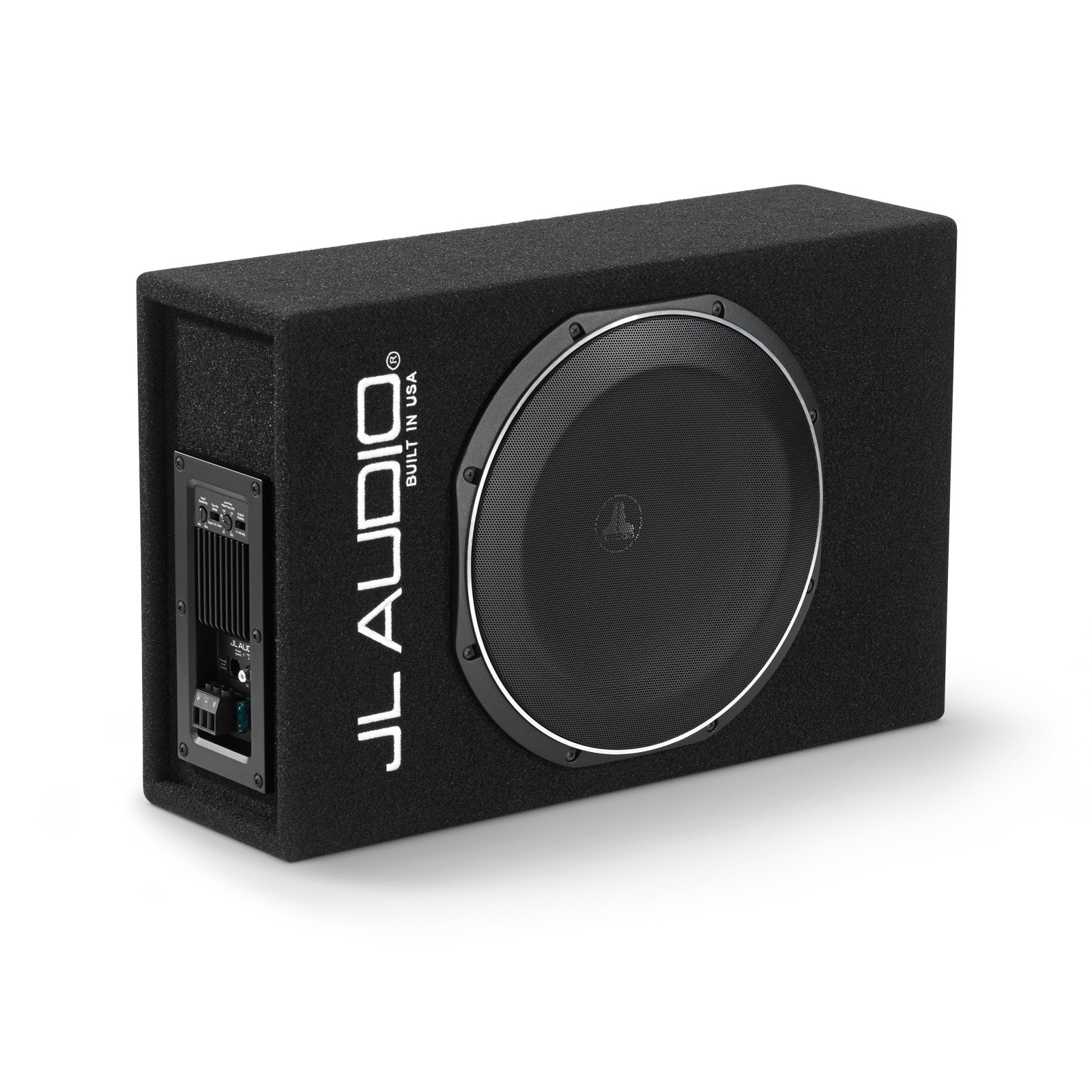 Активна система с един 12TW1 субуфър и вграден усилвател клас D с мощност 400 W RMS в затворен корпус. В системите PowerWedge+™ захранването е интегрирано директно в системата на субуфъра. Системата със собствен усилвател клас D използва ексклузивната технология на усилвателя DCD™ за извличане на максимална мощност от специално проектирания говорител TW1 с изключително ниска импеданс. Благодарение на комбинацията от директно преобразуване на мощността и изходна секция с изключително висок ток, усилвателите DCD™ работят без конвенционални превключващи захранвания, което им позволява да генерират забележителна мощност с изключителна ефективност. Тази субуфърна система е проектирана да доставя впечатляващ бас от корпус с дълбочина само 168 mm. Нископрофилният ѝ дизайн е внимателно разработен и настроен специално за субуфъра JL Audio 12TW1 за оптимално качество на звука и висока мощност. Интеграцията с OEM основни единици и следпродажбени главни устройства е лесна благодарение на редица входни опции и възможността за автоматично включване (чрез засичане на сигнал или засичане на DC офсет). Включва и регулируема честота на нискочестотния филтър (50-200 Hz) заедно с превключвател за контрол на поляритета на изхода. Добавянето на опционалното дистанционно управление на нивото RBC-1 (продава се отделно) ви позволява да регулирате нивото на субуфъра директно от мястото на водача. Бързоразкачващ се захранващ конектор улеснява изваждането на субуфъра, когато имате нужда от допълнително пространство.