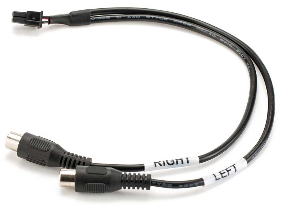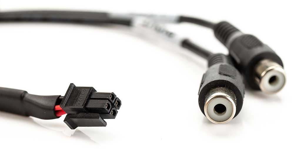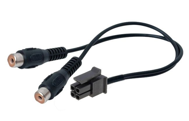 Подключващ кабел с RCA накрайник и от другата страна micro fit конектор. 2-канален, предназначен за усилватели и DSP процесори Mosconi Gladen.За марката