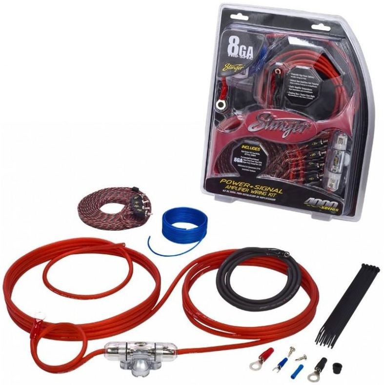 Висококачествен премиум комплект за захранване с проводник с сечение 8,4 mm² за инсталиране на усилвател до мощност 600 W max. Кабелните комплекти Stinger определено са едно от най-добрите, които може да намерите днес.Основни характеристики
