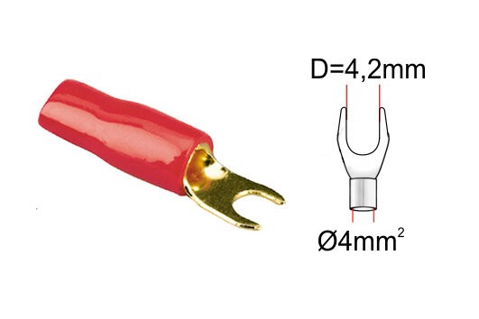 - Кабелна вилица 4,2 mm червена, за кабел 4 mm².