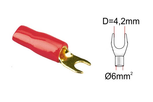 - Кабелна обувка тип „вилка“ 4,2 mm червена, за кабел 6 mm².