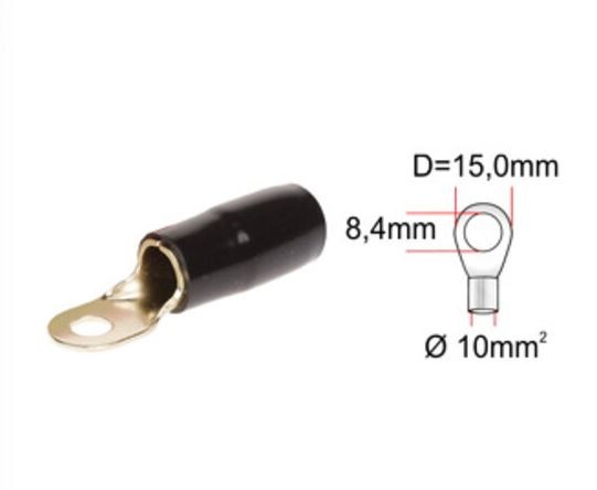 кабелна обувка тип „око“ за кабел 10 mm², черна изолация, 8,4 mm отвор