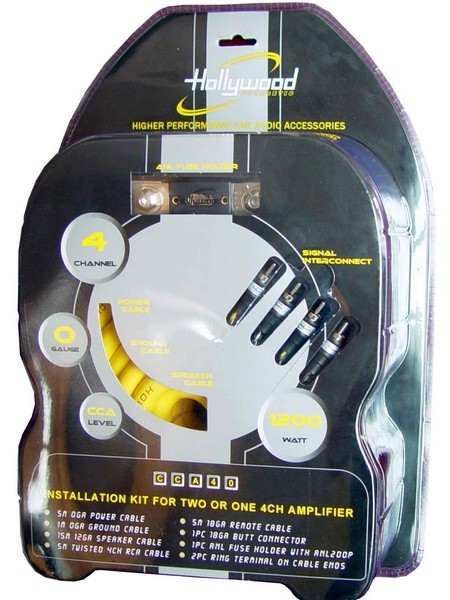 Кабелен комплект Hollywood CCA 40 е проектиран за инсталация на външен усилвател в автомобил и е подходящ за усилватели с мощност до 1200 W RMS. Този комплект съдържа всички необходими компоненти за безопасно и ефективно свързване на аудио оборудване. Идеален е за инсталации в леки автомобили, където е необходимо качествено и сигурно свързване на аудио компонентите. Благодарение на здравата си конструкция осигурява стабилен и чист звуков трансфер. Ако планирате инсталация на Hi-Fi система с мощен усилвател, кабелният комплект Hollywood CCA 40 е отличен избор за постигане на оптимална производителност.Основни характеристики