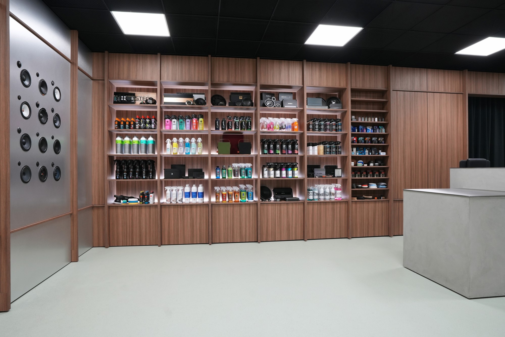 - Богат асортимент от продукти за озвучаване и шумоизолация на превозни средства и автокозметика на площ от 60 m².