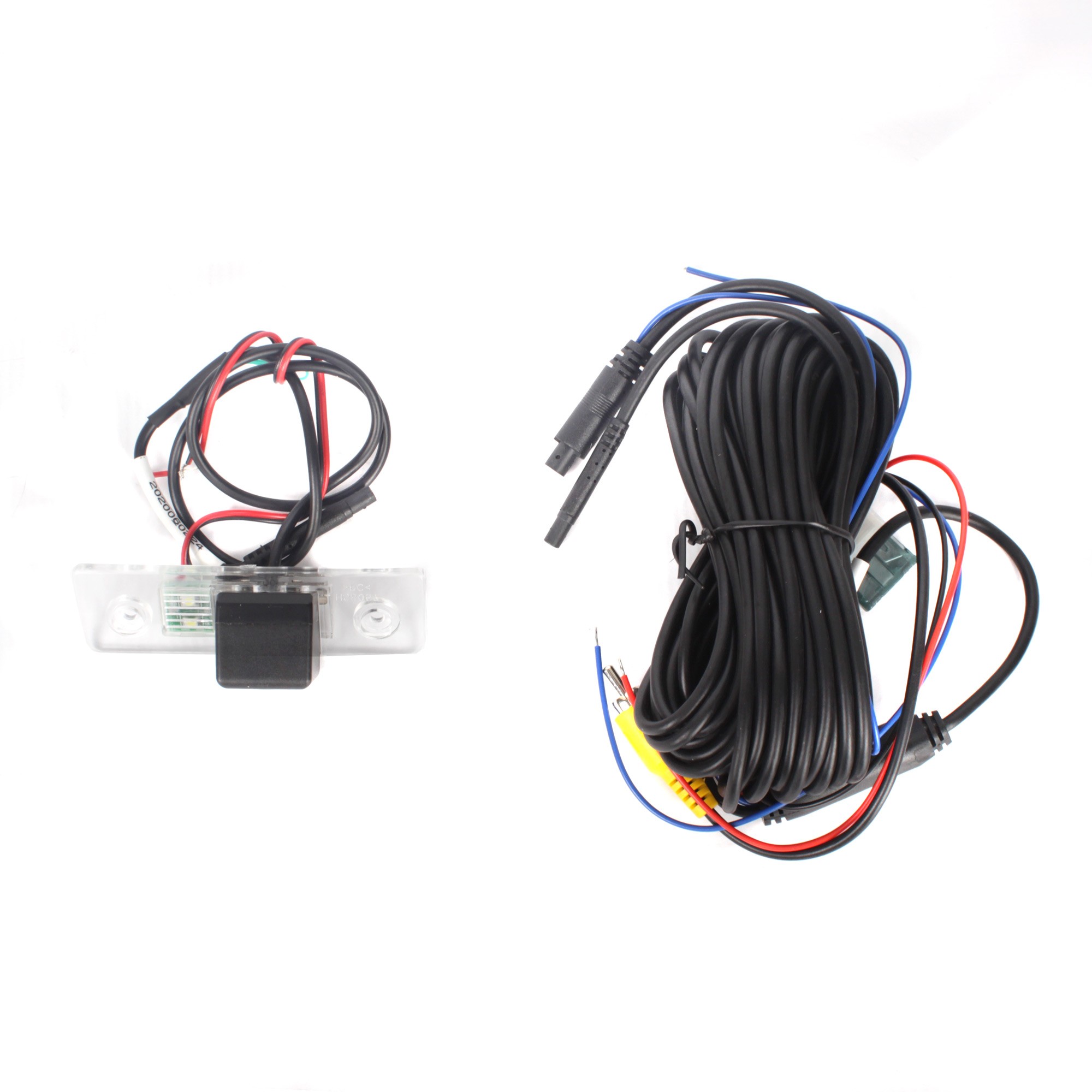 OEM цветна камера за паркиране за инсталиране в осветлението на задната регистрационна табела. Включено е LCD осветление, което замества оригиналното осветление. За автомобили Škoda Octavia II. преди фейслифта.