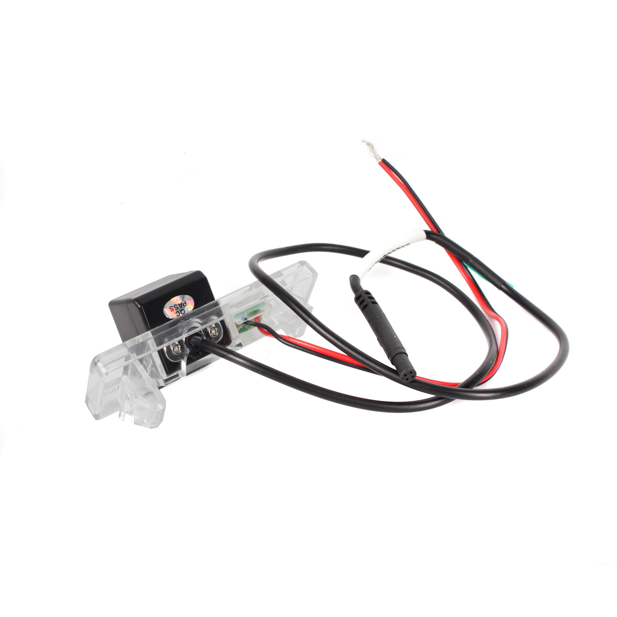 OEM цветна камера за паркиране за монтаж на мястото на осветлението на задния регистрационен номер. Част от камерата е място за поставяне на фасунга с крушка от оригиналното осветление за регистрационния номер.