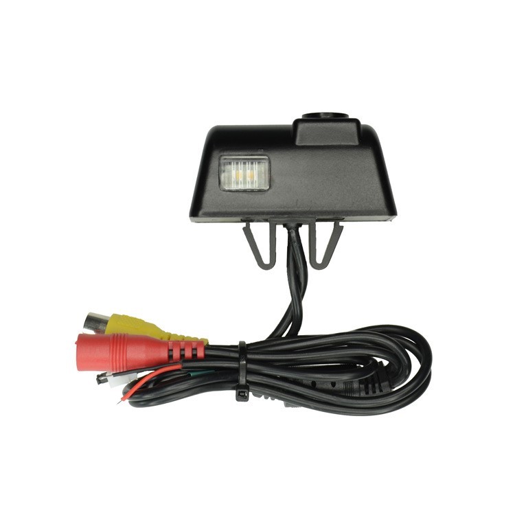 OEM цветна камера за паркиране за монтаж в лампата за осветление на задния регистрационен номер. В комплекта на камерата е включено LED осветление, заместващо оригиналното осветление.