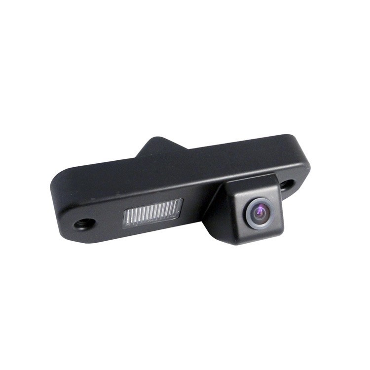 OEM цветна камера за паркиране за монтаж в лампата за осветление на задния регистрационен номер. Камерата включва място за поставяне на фасунга с крушка от оригиналната лампа за регистрационния номер.